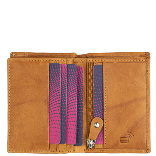 Aake-lompakko on taskukokoinen RFID-suojattu nahkalompakko useilla korttipaikoilla. Kuusi keskellepäin aukeavaa korttipaikkaa, jonka lisäksi ikkunallinen korttipaikka, pari muuta väliä, taustalla seteliväli ja kolikoille pieni vetoketjutasku. Mitat 7,5 x 11 x 2 cm.