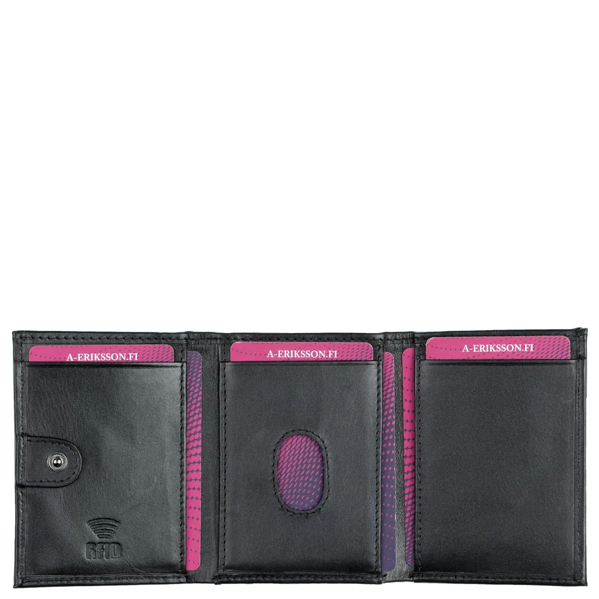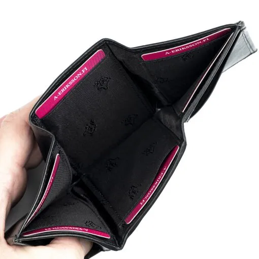 Tyylikäs taskukokoinen RFID-suojattu korttilompakko. Kolminkerroin taittuvassa lompakossa 12 korttipaikkaa ja seteleille pitkä väli. Kolikoille ei ole erillistä taskua.