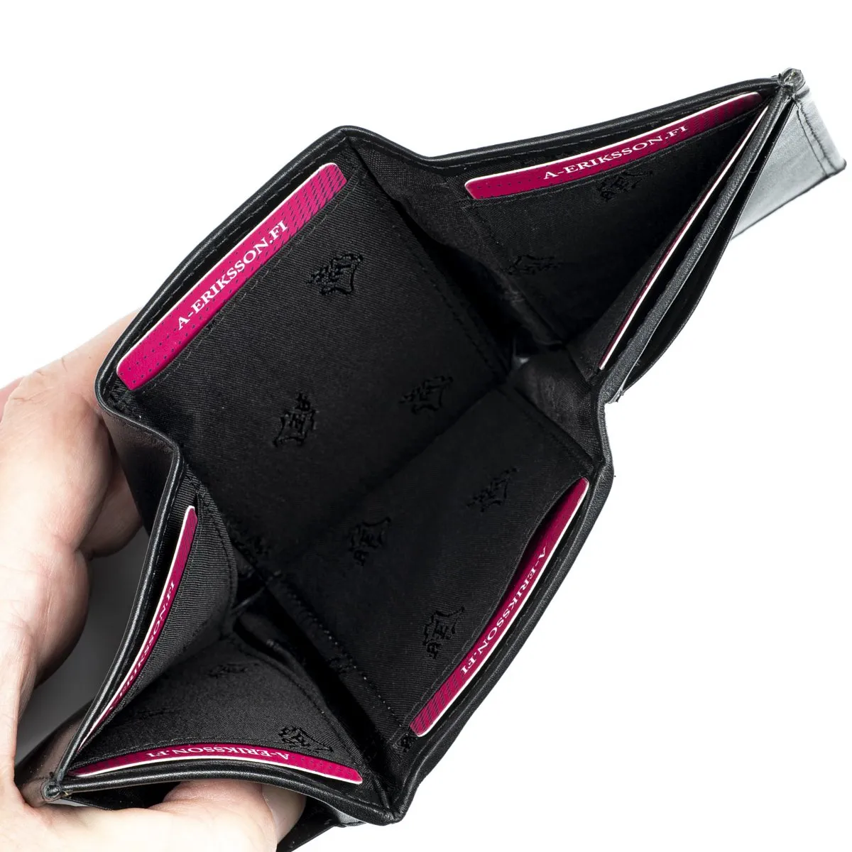 Jokainen tasku on mitoitettu yhdelle kortille – näin nahka säilyttää muotonsa ja kestää pidempään.