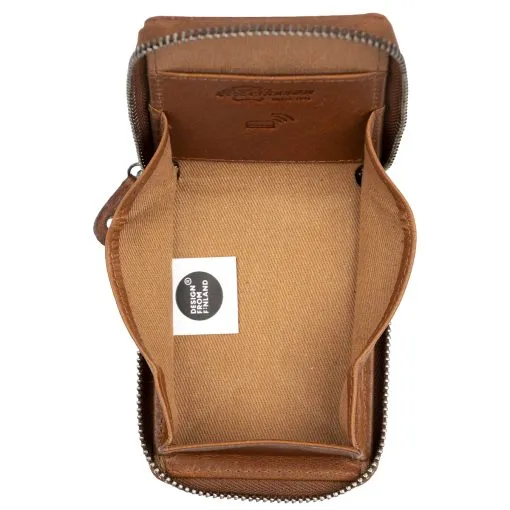Klassinen taskukokoinen kolikkokukkaro. Vetoketjulla avautuva kukkaro tarjoaa kolikot helposti näkyville ja poimittavaksi, reunat estävät kolikoita kuitenkin vierähtämästä pois. Kortille yksi luvattomalta etäluvulta suojaava RFID-tasku. Mitat 7,5 x 11 cm.