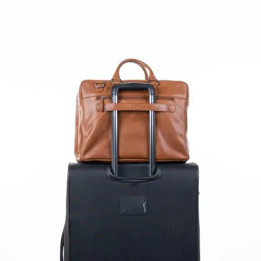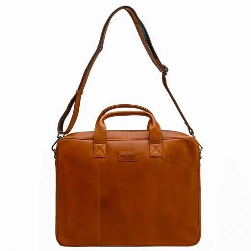 A. Erikssonin Eckerö-malliston tyylikäs nahkainen Elliot-salkku/olkalaukku läppäritaskulla. Vetoketjullisessa päätaskussa sisällä noin 36 x 27 cm pehmustettu osio kannettavalle tietokoneelle, tilava avoin tasku, kaksi vetoketjutaskua, korttipaikat, pari kynäpaikkaa sekä puhelintasku. Laukun takapuolella vielä vetoketjutasku sekä hihna josta laukun saa kiinnitettyä matkalaukun vetoaisaan. Mukana portaattomasti säädettävä olkahihna noin 85 – 150 cm. Mitat 40 x 30 x 7 cm, paino 900 g.