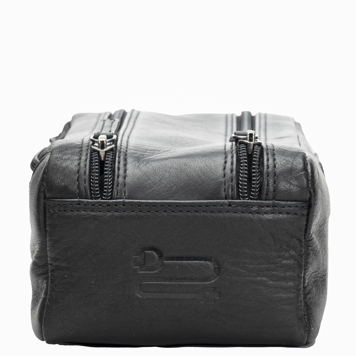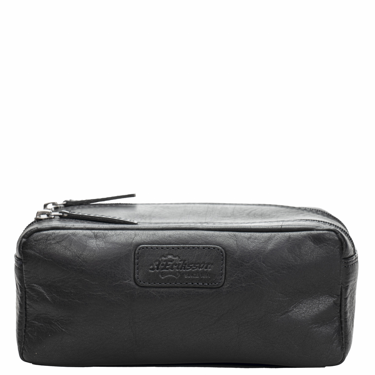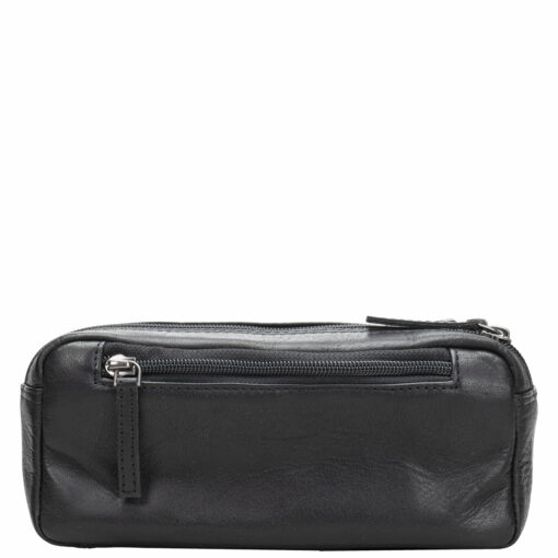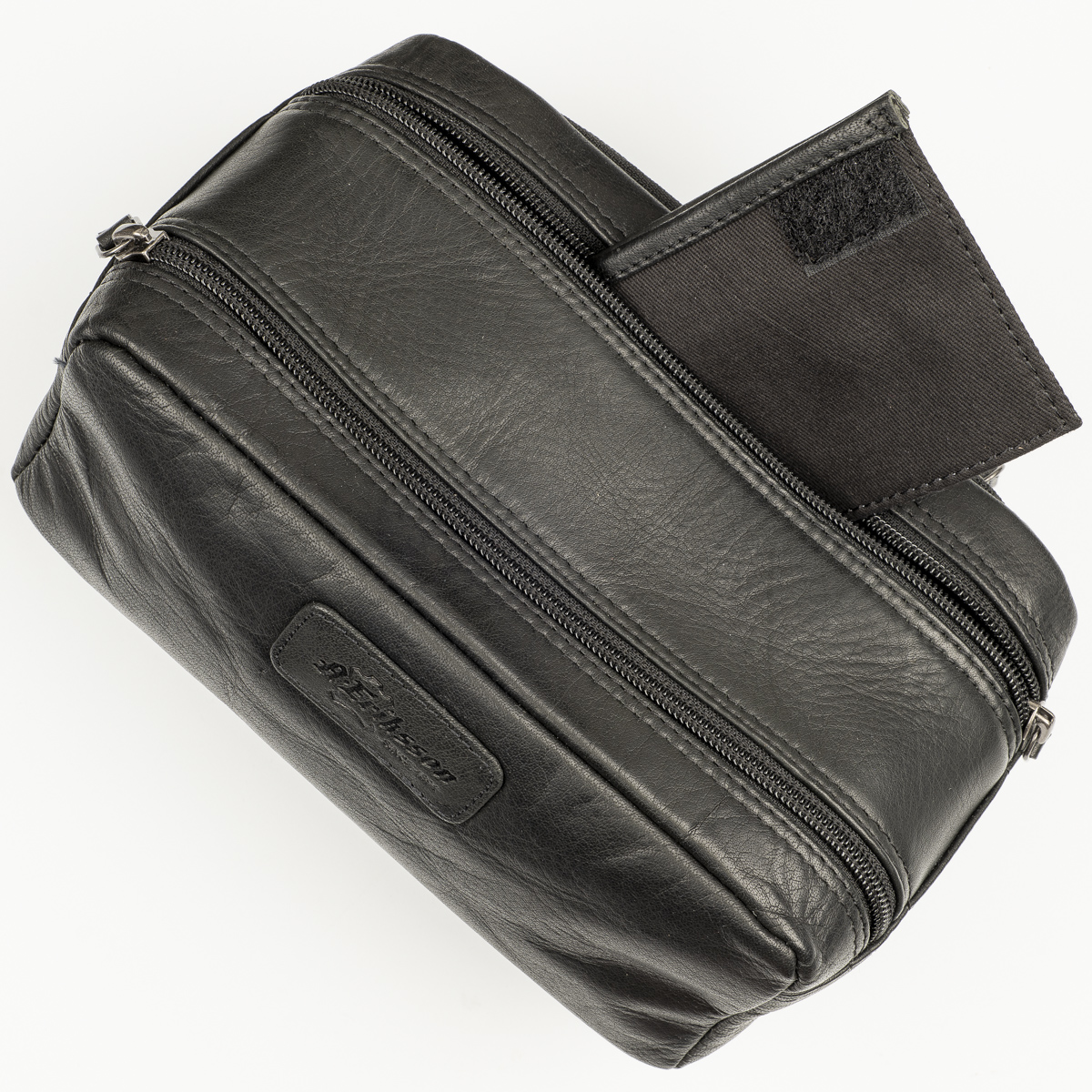 Pidä elektroniikan lisätarvikkeet tyylikkäästi järjestyksessä. Nahkainen kotelo johdoille, hiirelle ym.pienlisäosille. Kaksi tilavaa vetoketjutaskua, joista toisessa kaksi pientä sisätaskua ja toisessa tarrakiinnitteinen jakajapala. Sivussa vielä vetoiketjullinen tasku. Mitat 20 x 10 x 12 cm.
