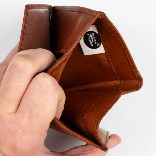 A. Eriksson Everett on tyylikäs RFID-suojattu pieni nahkalompakko setelivälillä. Jopa seitsemän keskellepäin aukeavaa korttipaikkaa, neljä muuta väliä, yksi ikkunallinen korttipaikka ja taustan 14 cm leveä seteliväli. Tässä mallissa ei ole kolikkotaskua. Mitat 7,5 x 11 x 1 cm.