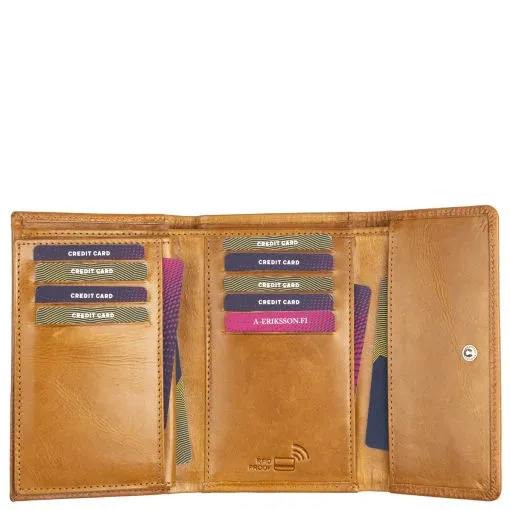 - RFID: Tuotteessa on nahkapinnan alla RFID suojaus eli radiotaajuisen etäluennan esto, jolloin lähimaksun ja henkilötietojen varastaminen pankki- tai luottokortin sirusta ei onnistu korttien ollessa tuotteen sisällä. RFID suoja ei tuotteessa näy tai tunnu siitä kertovaa pientä painettua merkkiä lukuun ottamatta.