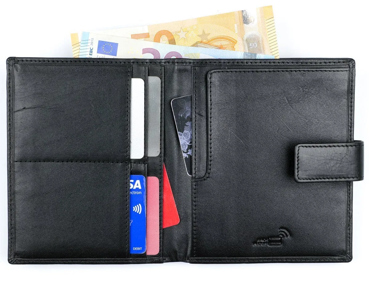 • RFID: Tuotteessa on nahkapinnan alla RFID suojaus eli radiotaajuisen etäluennan esto, jolloin lähimaksun ja henkilötietojen varastaminen pankki- tai luottokortin sirusta ei onnistu korttien ollessa tuotteen sisällä. RFID suoja ei tuotteessa näy tai tunnu siitä kertovaa pientä painettua merkkiä lukuun ottamatta.