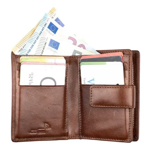 Gullkrona-malliston pieni nahkalompakko tuplanepparilla. Lompakossa on RFID suojaus joka estää sirullisten korttien etäluennan. Nepparin takana kahdeksan korttipaikkaa ja taustalla seteliväli. Kolikoille kaksiosainen vetoketjutasku.
