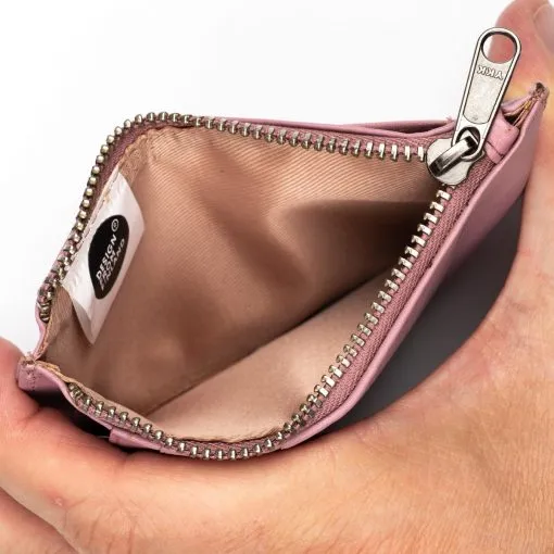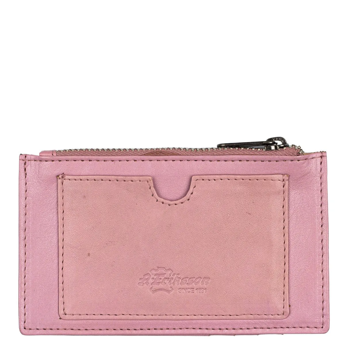 Tyylikäs korttikotelo jonka etuosassa neljä kottipaikkaa ja taustalla yksittäinen yhden kortin tasku. Näiden väliin jää kapea vetoketjullinen tasku rahalle, kuiteille ym. Korteille on RFID suojaus joka estää sirun luvattoman etäluennan.