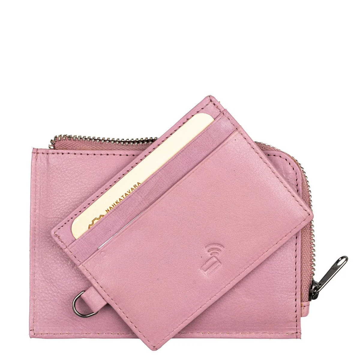 Tyylikäs nahkakukkaro irrotettavalla korttikotelolla ja yhdellä omalla korttipaikalla. Vetoketjullisessa päätaskussa avainlenkki johon korttikotelon voi kiinnittää. Korttikotelossa kolme korttipaikkaa joista yksi on ikkunallinen ja yksi muu väli.