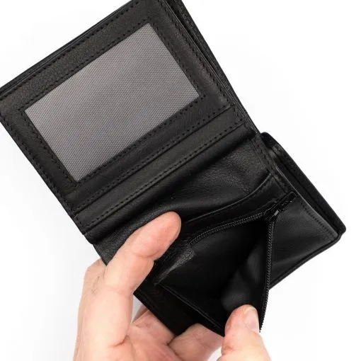 Näppärä pieni nahkalompakko kymmenellä korttipaikalla sekä vetoketjullisella kolikkotaskulla. Yksi korttipaikoista on ikkunallinen. Lompakon taustalla on kaksiosainen seteliväli. Lompakossa on RFID-suojaus, joka estää sirullisen etäluettavien korttien etäluvun.