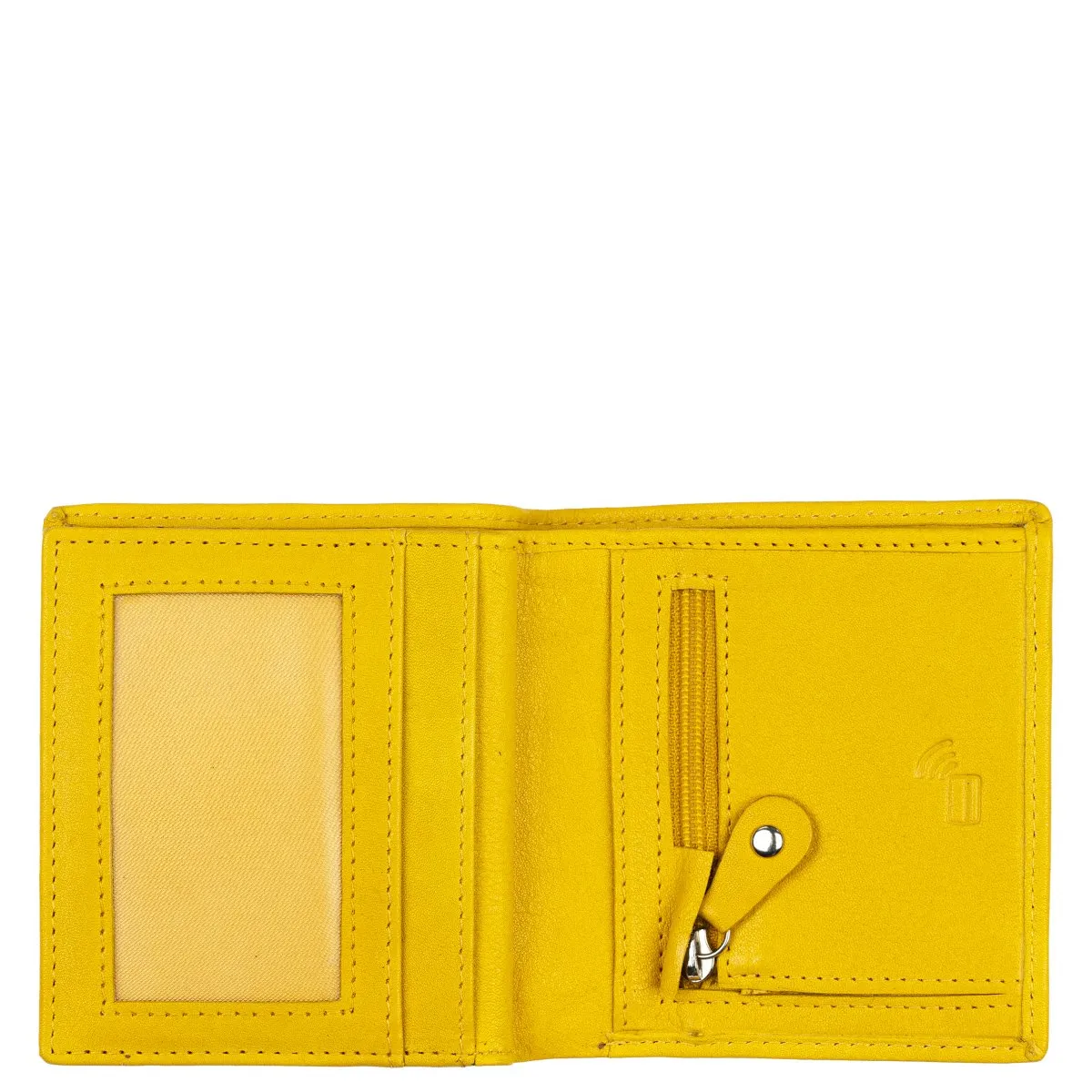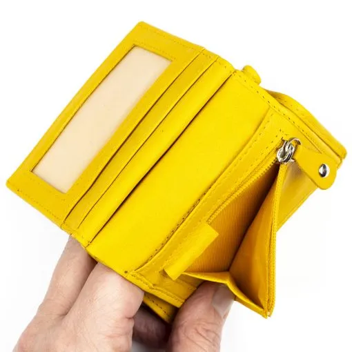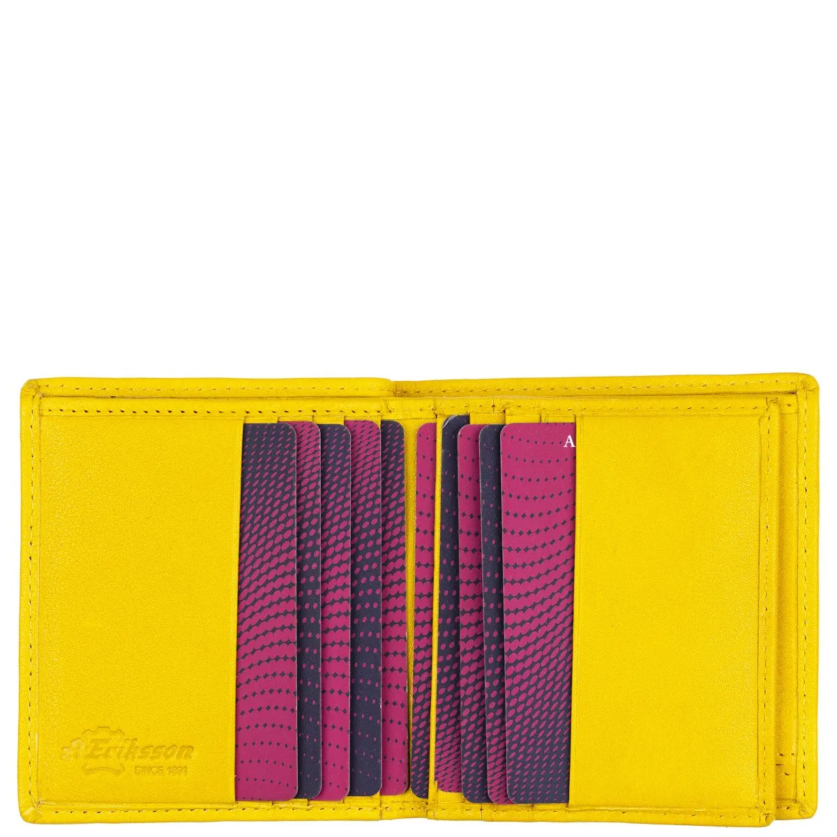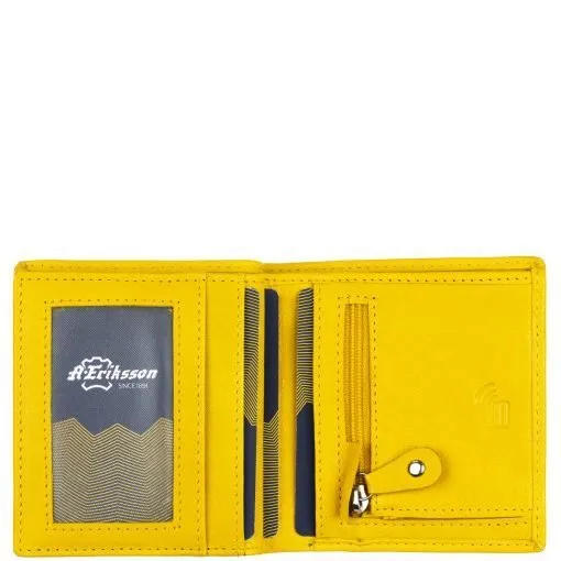 Tyylikäs RFID-suojattu pikkulompakko. Kymmenen korttipaikkaa joista yksi ikkunallinen, lisäksi nejä muuta väliä, kaksiosainen seteliväli taustalla ja kolikoille vetoketjullinen pikkutasku.