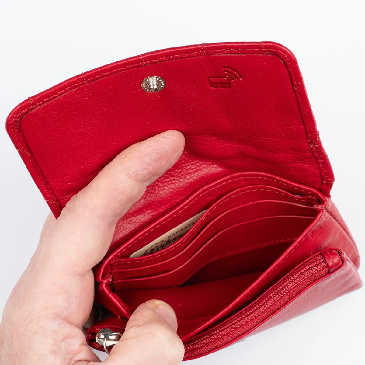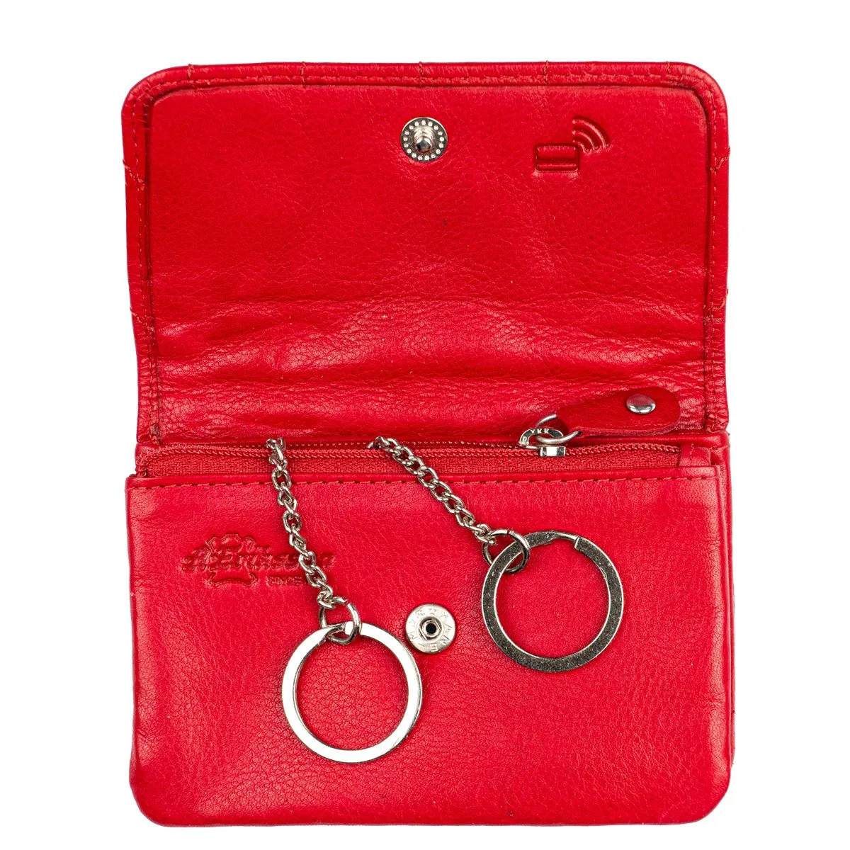 Monipuolinen nahkainen avainkukkaro yhdistettynä korttikoteloon. Neppariläpän alla on vetoketjullinen tasku kahdella avainlenkillä sekä kaksi avointa taskua. Toisessa taskuista on yksilölliset korttipaikat kolmelle kortille, mutta kortteja mahtuu useampi avoimeen tilaan. Pussukan takapuolella on vielä vetoketjullinen pikkutasku. Tämä tuote on RFID-suojattu ja estää lähimaksukorttien luvattoman etäluvun.