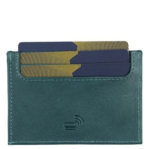 Näppärä pieni korttikotelo, jossa molemmin puolin 2 korttipaikkaa. Niiden väliin jää vielä kaksi erillistä taskua, joihin molempiin mahtuu kortti tai esim. taitettu seteli. Kotelo on RFID-suojattu ja estää korttien luvattoman etäluvun. Mitat 10 x 7 x 0,5 cm