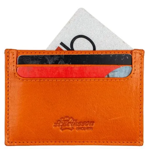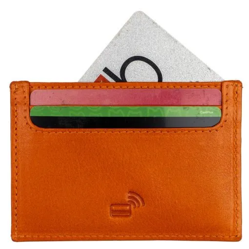 Näppärä pieni korttikotelo, jossa molemmin puolin 2 korttipaikkaa. Niiden väliin jää vielä kaksi erillistä taskua, joihin molempiin mahtuu kortti tai esim. taitettu seteli. Kotelo on RFID-suojattu ja estää korttien luvattoman etäluvun. Mitat 10 x 7 x 0,5 cm