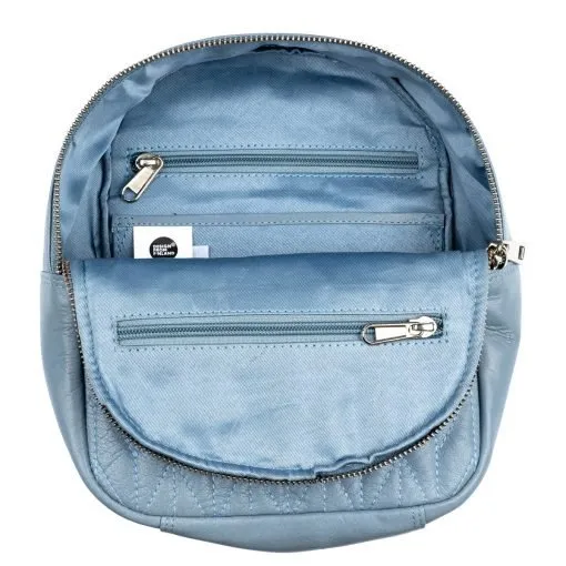 Söpö pieni ja kevyt nahkareppu kauniilla tikkikuosilla ja vetoketjullisella etutaskulla. Repun pääosasto suljetaan vetoketjulla ja sisällä on kaksikin vetoketjutaskua joiden lisäksi vielä avotasku vaikka puhelimelle. Laukun takana on näppärä pieni tasku yhdelle kortille. Olkahihnojen pituus on säädettävissä.
