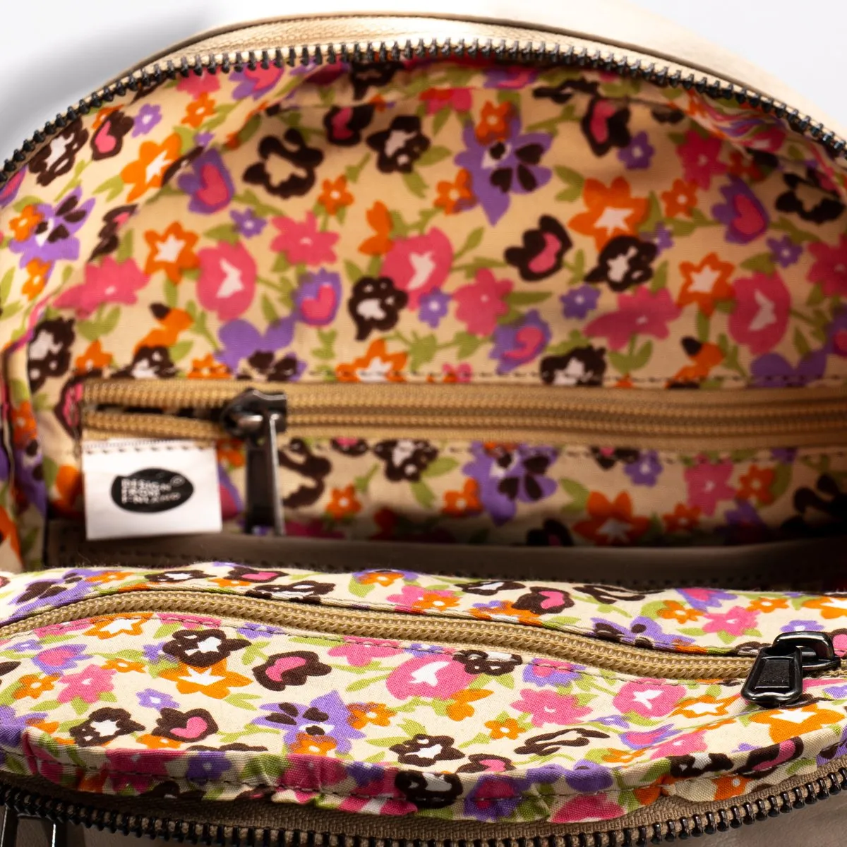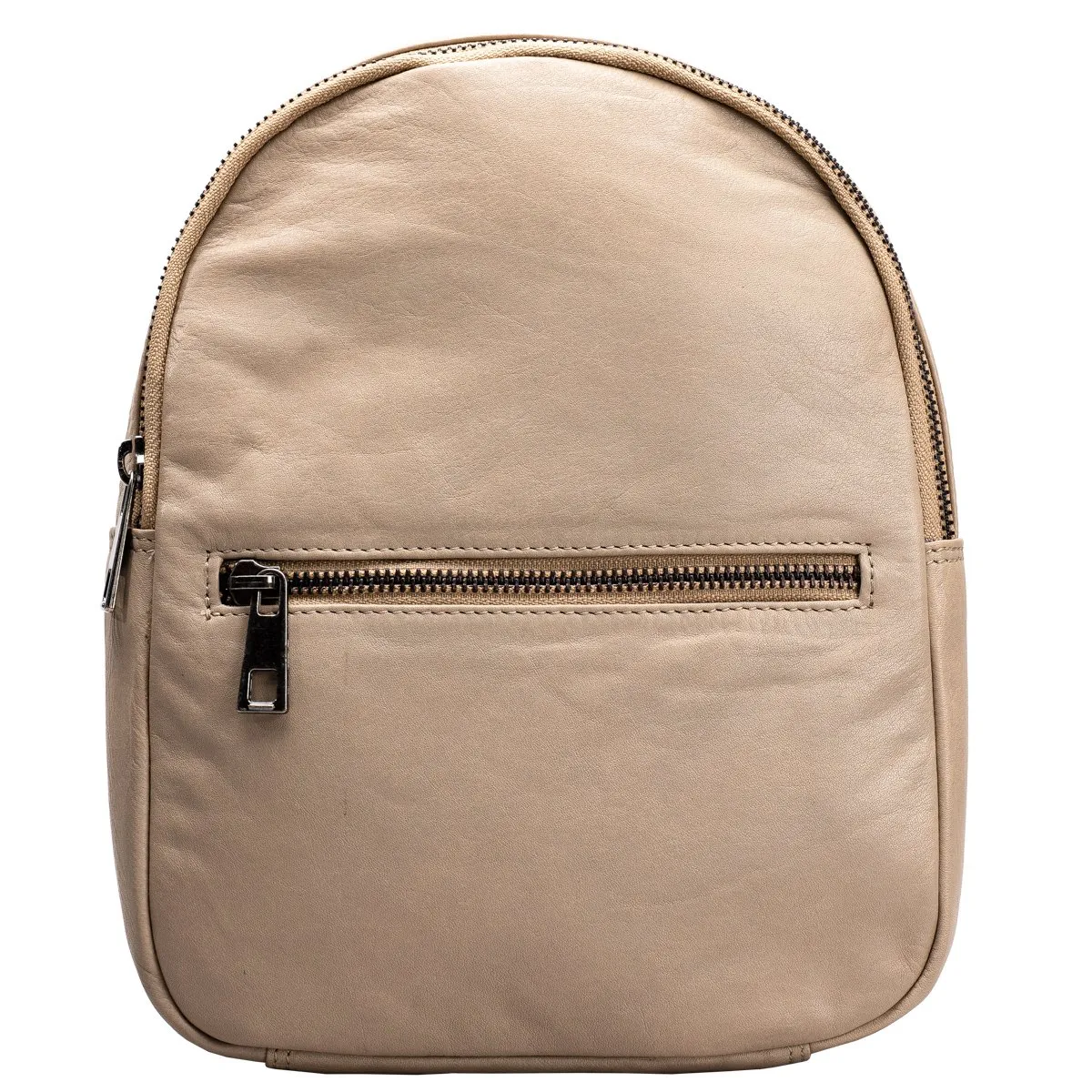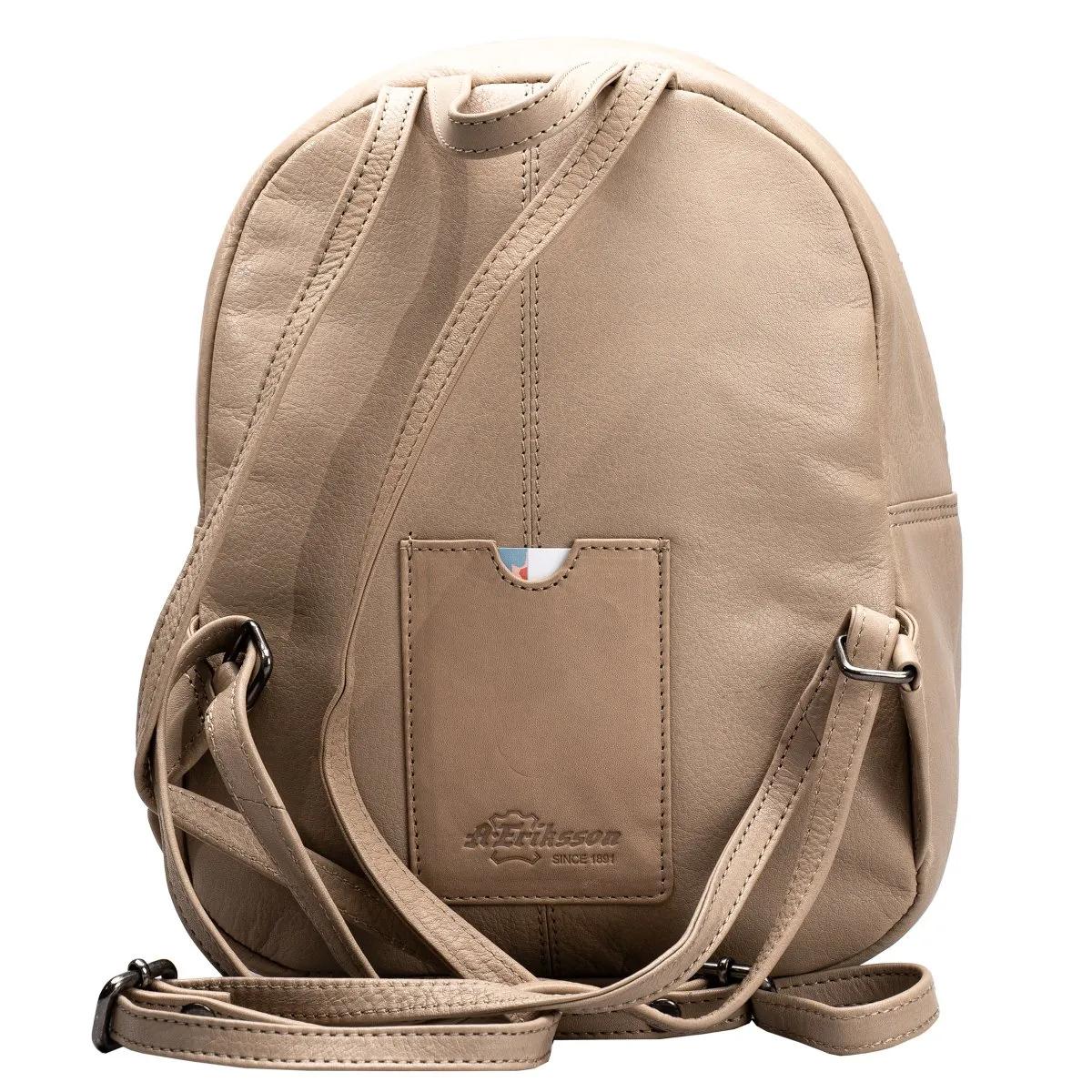 Söpö pieni ja kevyt nahkareppu vetoketjullisella etutaskulla. Repun pääosasto suljetaan vetoketjulla ja sisällä on kaksikin vetoketjutaskua joiden lisäksi vielä avotasku vaikka puhelimelle. Laukun takana on näppärä pieni tasku yhdelle kortille. Olkahihnojen pituus on säädettävissä.