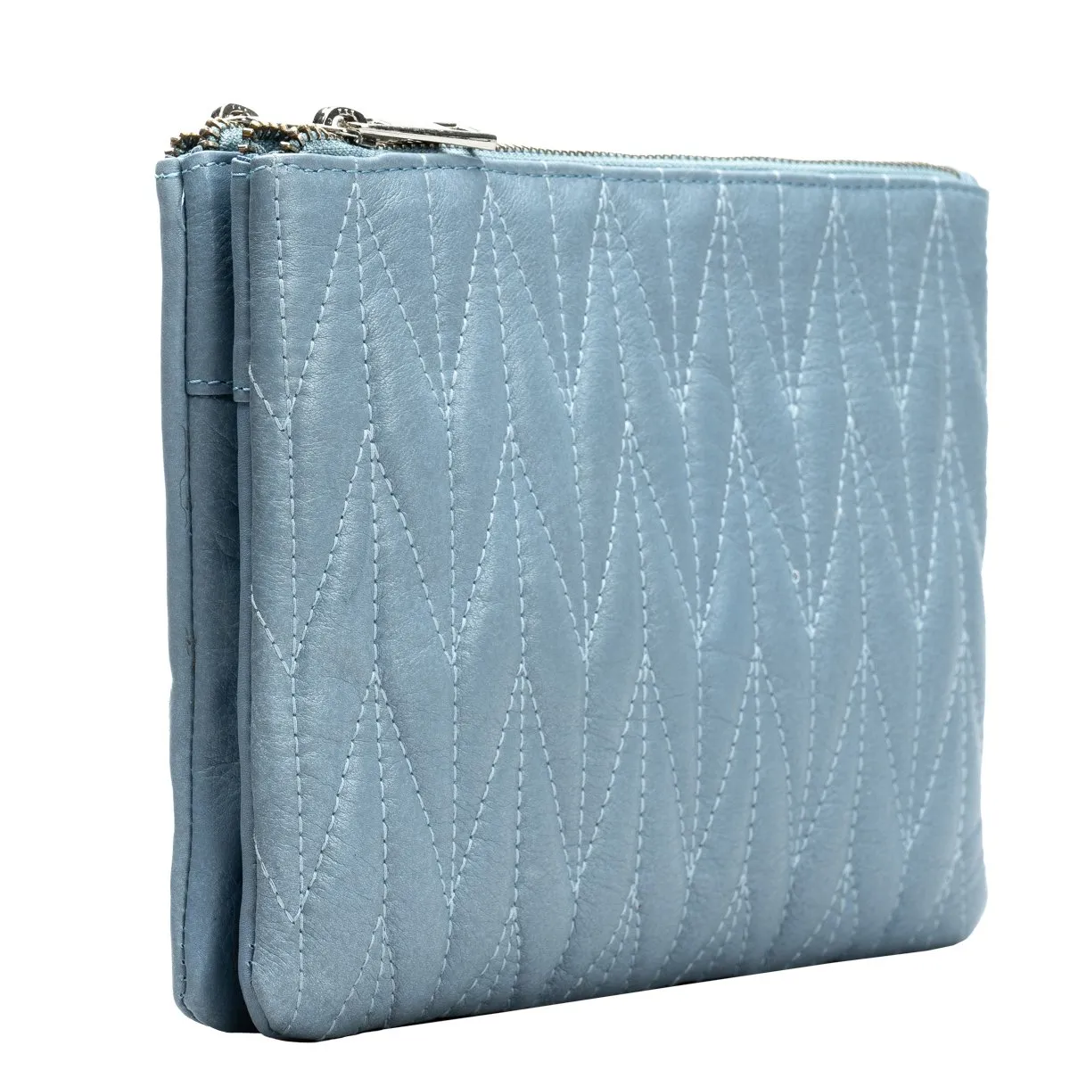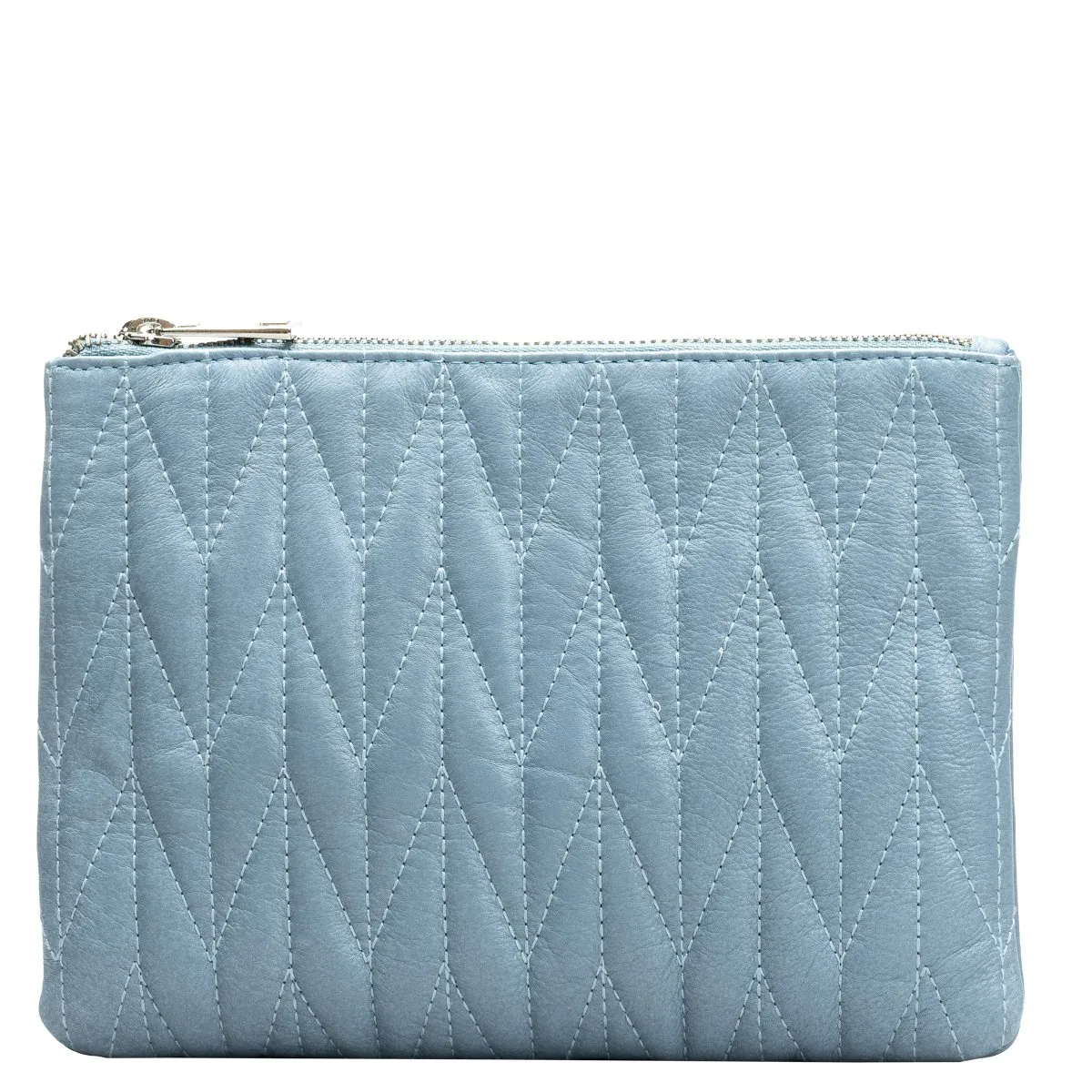 Tyylikäs laukku ihanan pehmeää nahkaa kauniilla tikkikuosilla. Arkeen ja juhlaan sopivassa laukussa on kaksi isoa vetoketjutaskua sekä niiden väliin jäävä magneettikiinnitteinen tasku. Vetoketjutaskuista löytyy puhelintasku, korttipaikat sekä vielä pieni sisävetoketjutasku. Mitat:25 x 17 x 5 cm