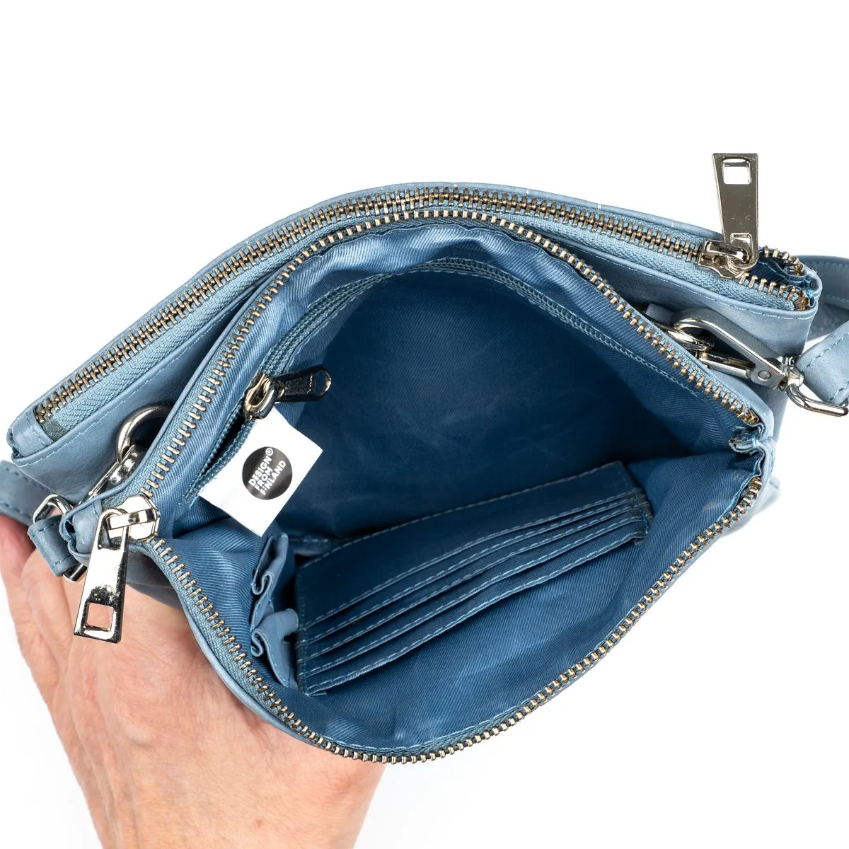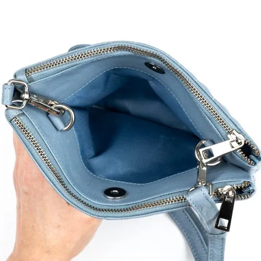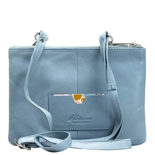 Tyylikäs laukku ihanan pehmeää nahkaa. Arkeen ja juhlaan sopivassa laukussa on kaksi isoa vetoketjutaskua sekä niiden väliin jäävä magneettikiinnitteinen tasku. Vetoketjutaskuista löytyy puhelintasku, korttipaikat sekä vielä pieni sisävetoketjutasku. Irrotettava ja säädettävä pitkä olkahihna.