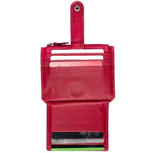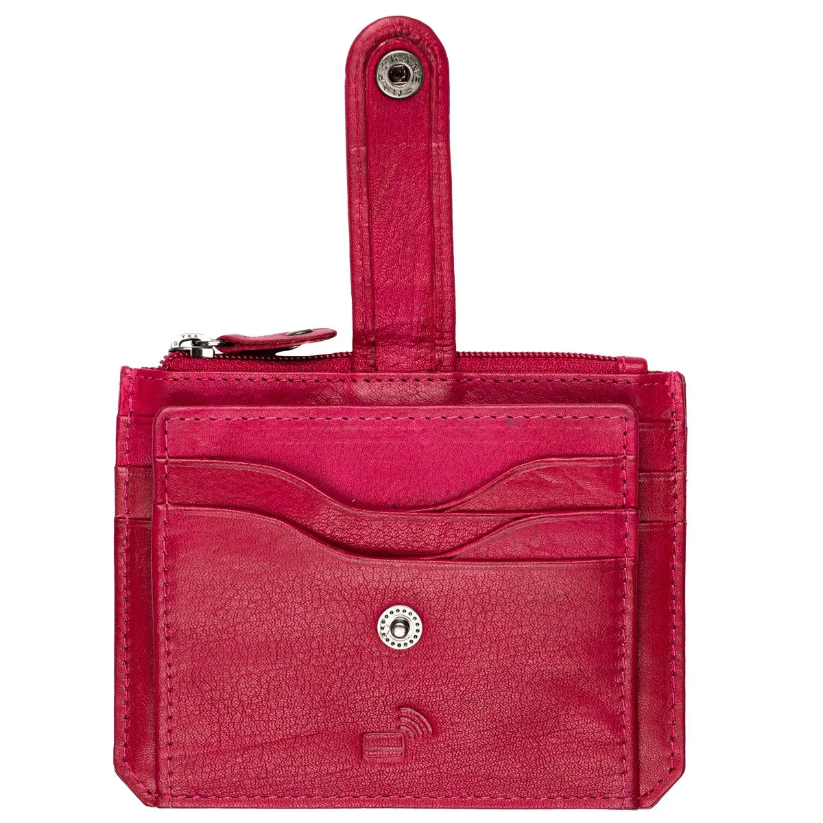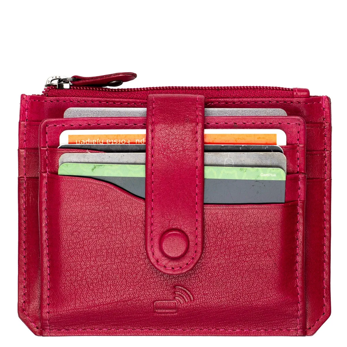 Usean kortin nahkakotelo.Kotelon edessä nepparilla suojattuna neljä korttipaikka näkyvillä ja niiden takana 3+3 korttipaikkaa lisää. Tuotteen keskellä pieni vetoketjutasku ja taustalla vielä toiset neljä korttilokeroa. Kotelo on RFID-suojattu ja estää korttien luvattoman etäluvun. Mitat 11 x 9 x 1 cm
