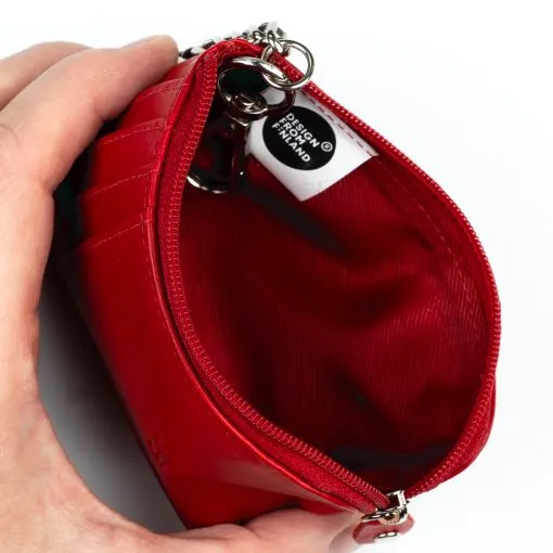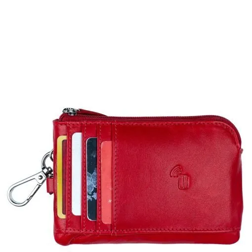 Monipuolinen pieni kukkaro jonka edessä on neljä korttitaskua ja takana vielä yksi korttitasku. Vetoketjulliseen päätaskuunmahtuu tarpeen mukaan lisää kortteja tai kolikoita ja seteleitä taitettuna ym. pientä. Kukkarossa on kiinni näyttävä metalliketju ja haka jolla sen voi ripustaa vaikka laukun sisälle kiinni tai vaihtoehtoisesti kiinnittää tuotteeseen vaikka avaimet. Tuote on RFID-suojattu, joten se estää luvattoman etäluvun lähimaksukorteista.