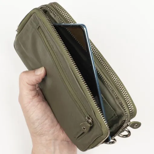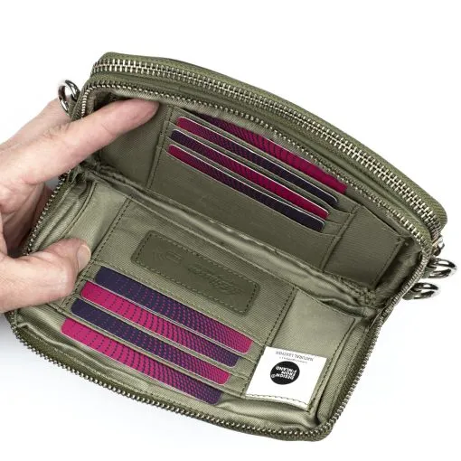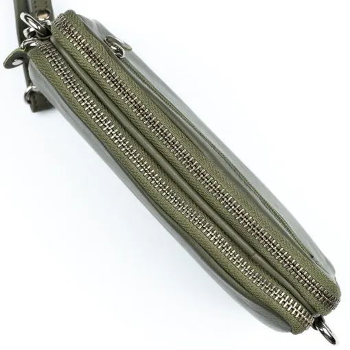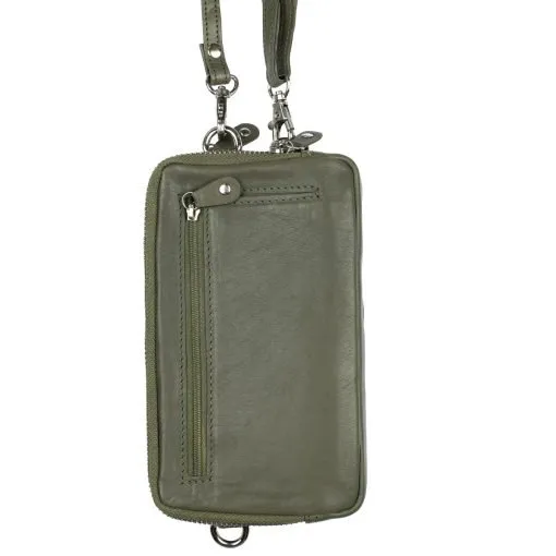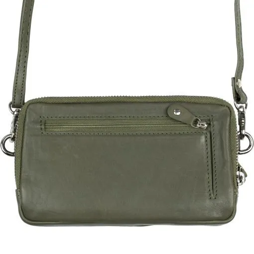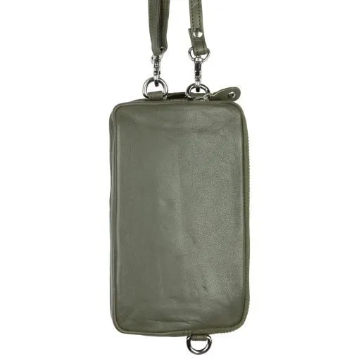 Pieni kätevä nahkainen olkalaukku jonka olkahihna on siirrettävissä siten että laukkua voi kantaa joko pysty- tai vaakasuunnassa. Laukun etupuolen vetoketjulla suljettavaan taskuun sopii hyvin esimerkiksi puhelin (ulkomitoiltaan enintään 10,5 x 17 x 2 cm). Toisessa vetoketjulla suljettavassa taskussa on etäluennan estävä RFID-suojaus. Taskun sisällä on molemmin puolin kolme korttipaikkaa, niiden takana litteä välikkö seteleille ja taskussa tilaa esim. passille. Laukun takana on litteä vetoketjutasku kolikoille. Irrotettavan olkahihnan pituus on säädettävissä 75 cm – 140 cm. Mitat 11,5 x 18,5 x 5 cm.