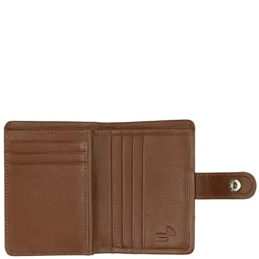 Söpö Himmi-pikkulompakko aitoa nahkaa. Tuplaneppari helpottaa täyden lompakon sulkemista ja pitää kortit turvallisesti paikoillaan. Kuusi keskellepäin aukeavaa korttipaikkaa sekä neljä muuta taskua. Ikkunallinen paikka esimerkiksi henkilökortille ja vielä kolme ylöspäin aukeavaa korttipaikkaa Taustalla seteliväli ja takapuolella vetoketjullinen pieni kolikkotasku. RFID-suojaus estää lähimaksukorttien luvattoman etäluvun. Mitat: 8 x 11 x 2 cm.