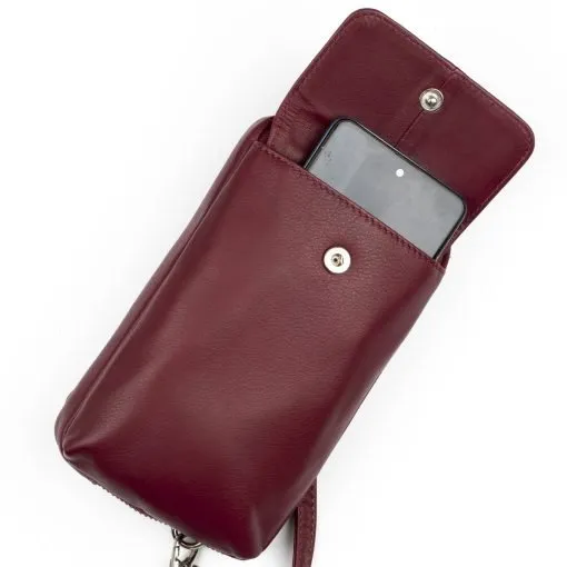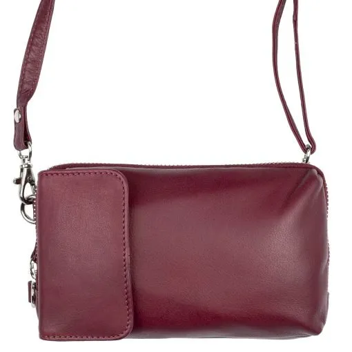 Rachel on monipuolinen pieni olkalaukku/puhelinlaukku/lompakko. Irrotettava pitkä olkahihna voidaan kiinnittää laukkuun pysty- tai vaaka-asentoon.