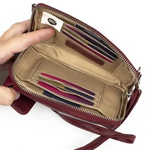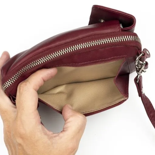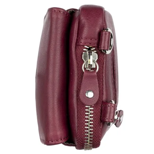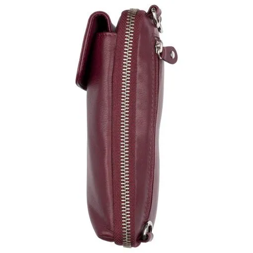 Vetoketjulla suljettava osio, jossa RFID-suoja estää maksukorttien luvattoman etäluvun. Taskun sisällä molemmin puolin kolme korttipaikkaa ja niiden takana pidemmät väliköt esim. seteleille. Laukussa on tilaa myös esimerkiksi passille. Laukun etupuolella nepparilla suljettavaan taskuun mahtuu puhelin ulkomitoiltaan noin max. 8,5 x 16,5 cm. Laukun takapuolella on litteä vetoketjutasku esim. kolikoille.