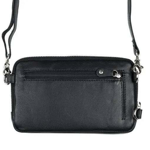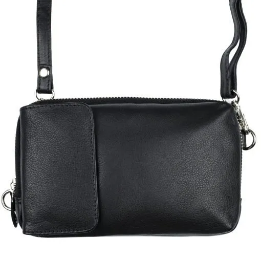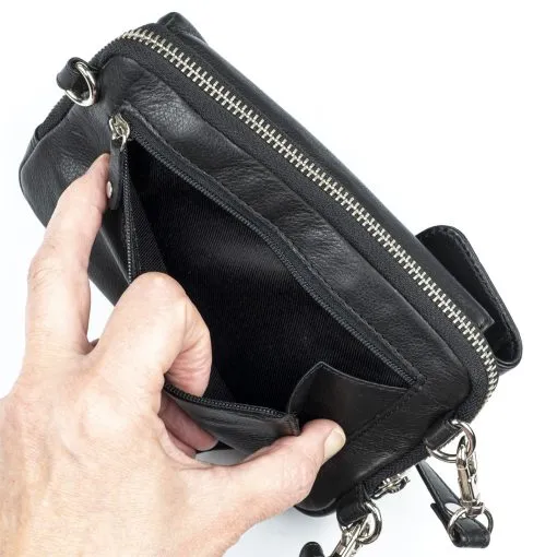 Rachel on pieni nahkainen olkalaukku/puhelinlaukku/lompakko. Vetoketjulla suljettava osio, jossa RFID-suoja estämäsä luvatonta etälukua. Taskun sisällä molemmin puolin kolme korttipaikkaa ja niiden takana pidemmät väliköt esim. seteleille. Laukussa on tilaa myös passille tms. Laukun edessä nepparilla suljettavaan taskuun mahtuu älypuhelin ulkomitoiltaan enintään 8,5 x 16,5 x 1,5cm. Laukun takana on litteä vetoketjutasku esim. kolikoille. Irrotettavan olkahihnan pituus on säädettävissä 75 cm – 140 cm. Mitat 11 x 18 x 4 cm.