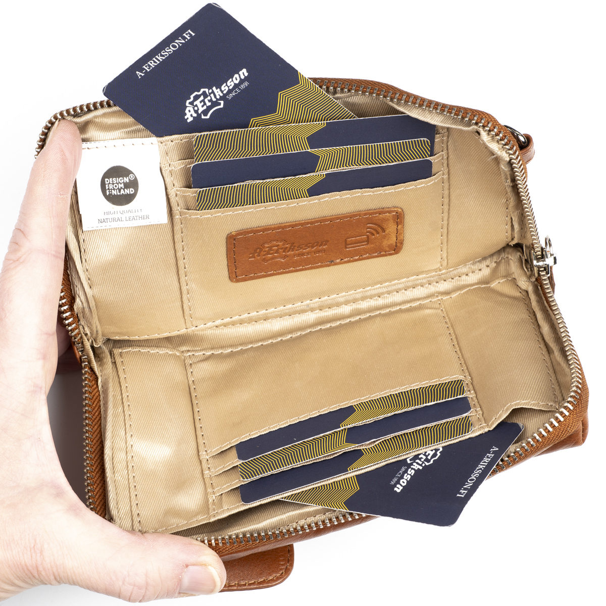 Osastot: A. Eriksson nahkalaukut, Juhlaan, Lompakot, Matkalle mukaan, Nahkaiset olkalaukut, Nahkaiset pikkulaukut, Naisten kädessä ja olalla kannettavat lompakot, Naisten laukut, Naisten laukut puhelimelle, Naisten lompakot, Naisten olkalaukut, Naisten pikkulaukut, Ruskea, Työn tekoon, Vapaa-aikaan