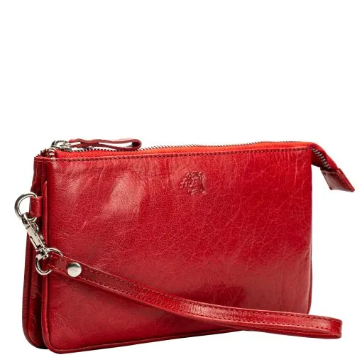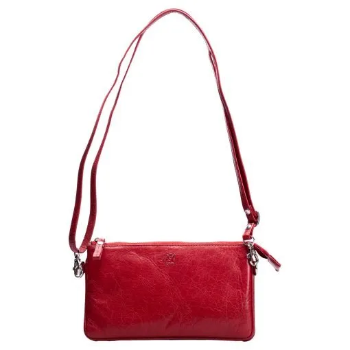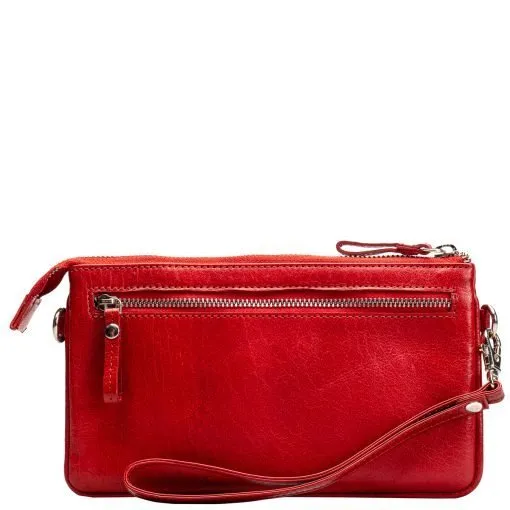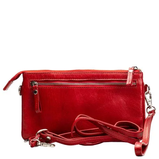 Sievä ja monikäyttöinen nahkainen pikkulaukku, mikä sopii niin juhlaan kuin arkeenkin. Laukku suljetaan vetoketjulla, sisällä kolme lokeroa, joista yhdessä kuusi korttipaikkaa ja yhdessä pieni vetoketjutasku. Keskimmäisessä kapeammassa lokerossa voi säilyttää esimerkiksi puhelinta. Takapuolella vielä vetoketjullinen tasku. Mukana sekä pitkä, säädettävä olkahihna että rannehihna. Mittatiedot