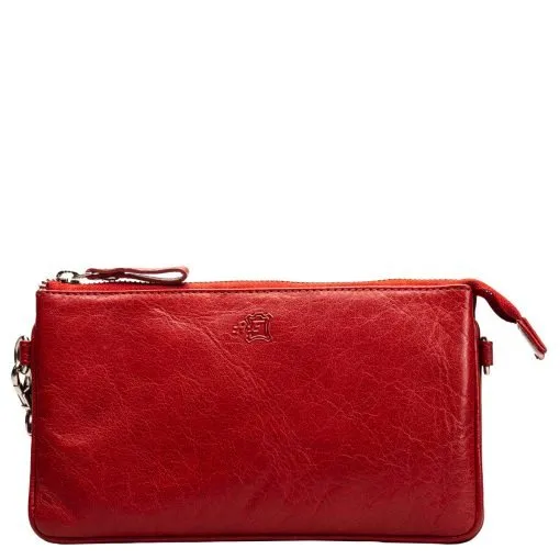A.Erikssonin sievä ja monikäyttöinen pikkulaukku. Tämä nahkalaukku sopii niin juhlaan kuin arkeenkin. Vetoketjullisessa päätaskussa sisällä kolme lokeroa, joista yhdessä kuusi korttipaikkaa ja yhdessä pieni vetoketjutasku. Keskimmäisessä kapeammassa lokerossa voi säilyttää esimerkiksi puhelinta. Takapuolella vielä vetoketjullinen tasku. Mukana sekä pitkä, säädettävä olkahihna että rannehihna.