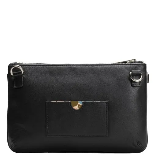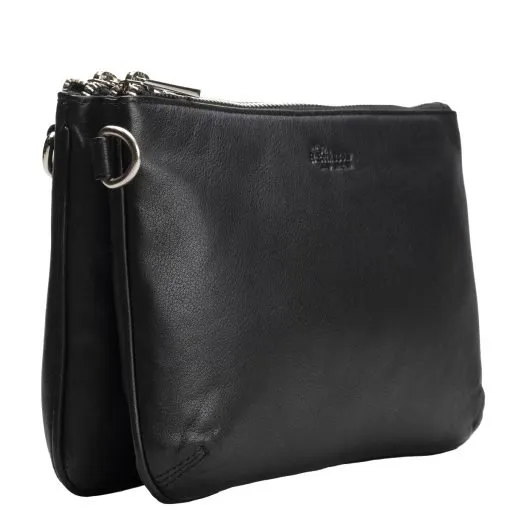 Odette on tyylikäs laukku ihanan pehmeää nahkaa. Arkeen ja juhlaan sopivassa laukussa on kaksi isoa vetoketjutaskua sekä niiden väliin jäävä magneettikiinnitteinen tasku. Toisessa vetoketjutaskussa on sisävetoketjutasku ja korttipaikat ja toisessa avoin tasku esimerkiksi puhelimelle. Laukun takapuolella yksi korttipaikka vaikka matkakortille. Irrotettava ja säädettävä pitkä olkahihna sekä rannelenkki.