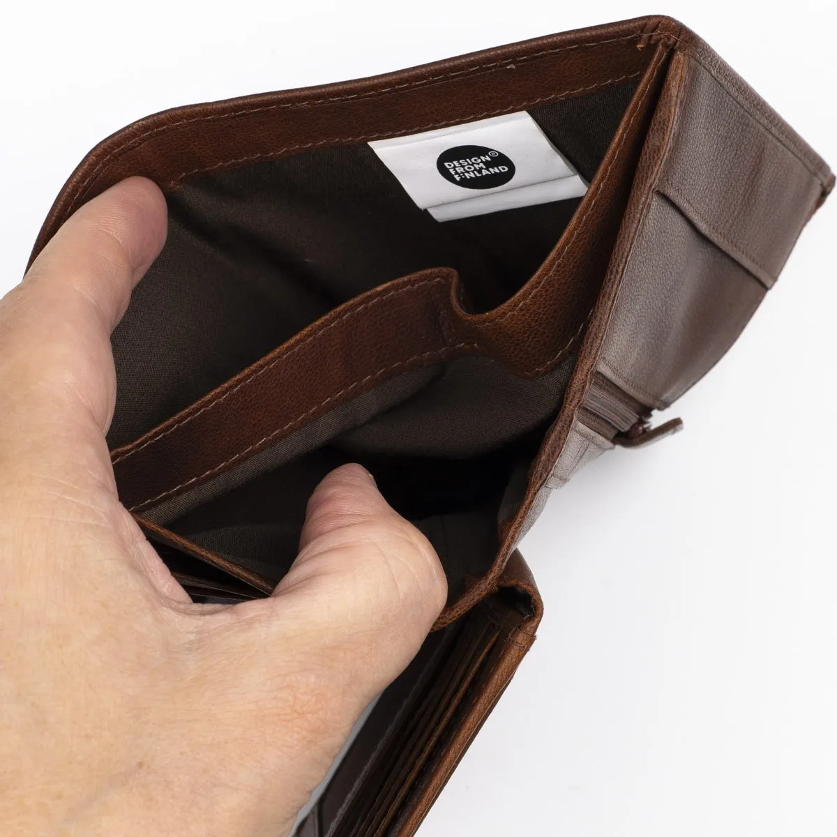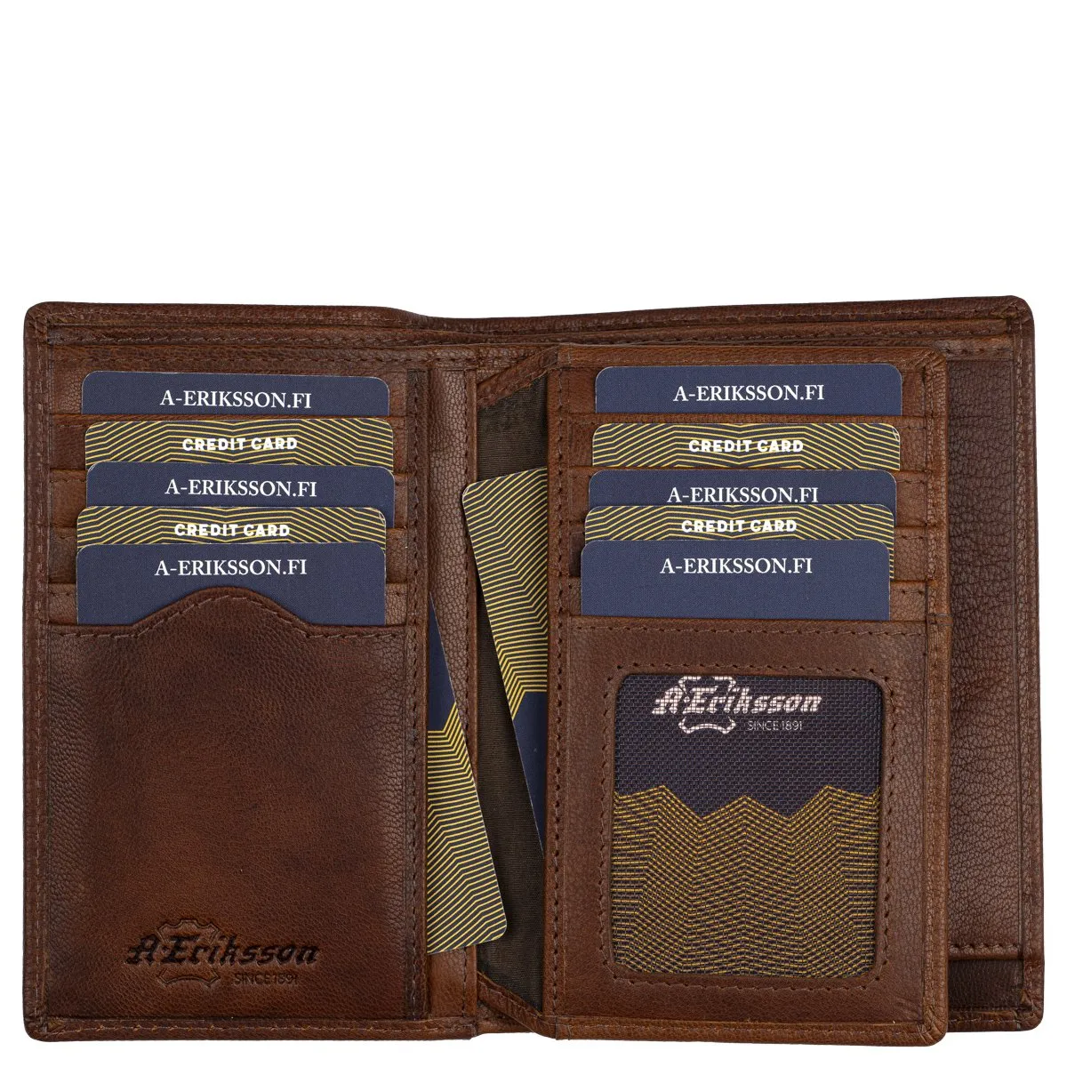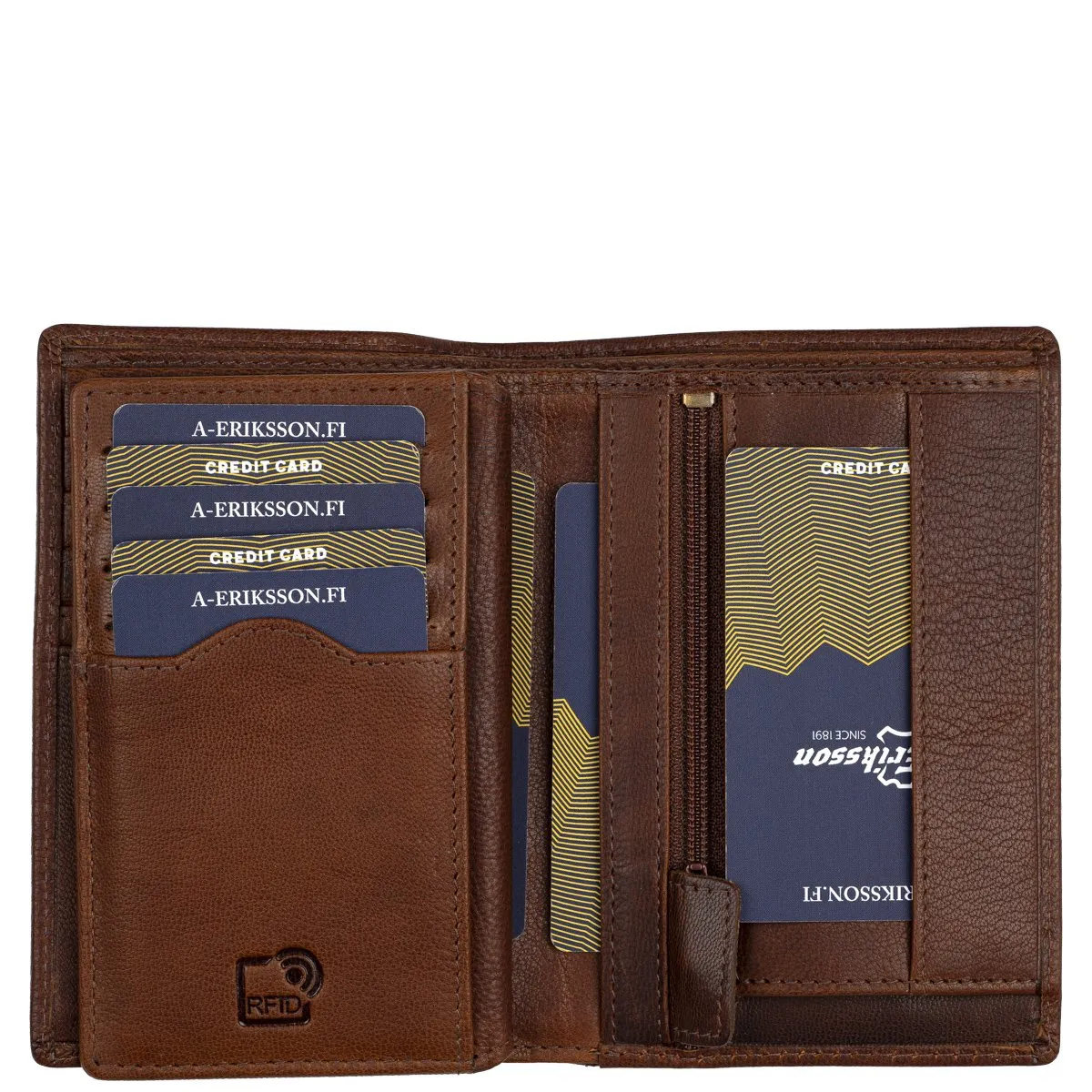 Poikko-malliston Pasi on tyylikäs RFID-suojattu lompakko laadukasta nahkaa. Jopa viisitoista korttipaikkaa, joista yksi on ikkunallinen. Lisäksi useita muita taskuja/välejä, vetoketjullinen tasku kolikoille ja taustalla kaksiosainen seteliväli.