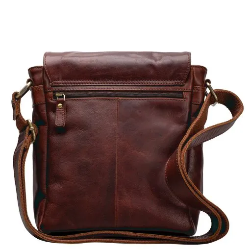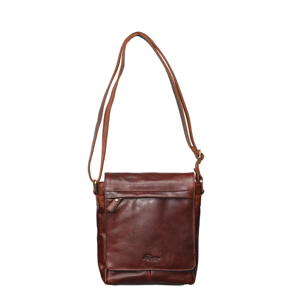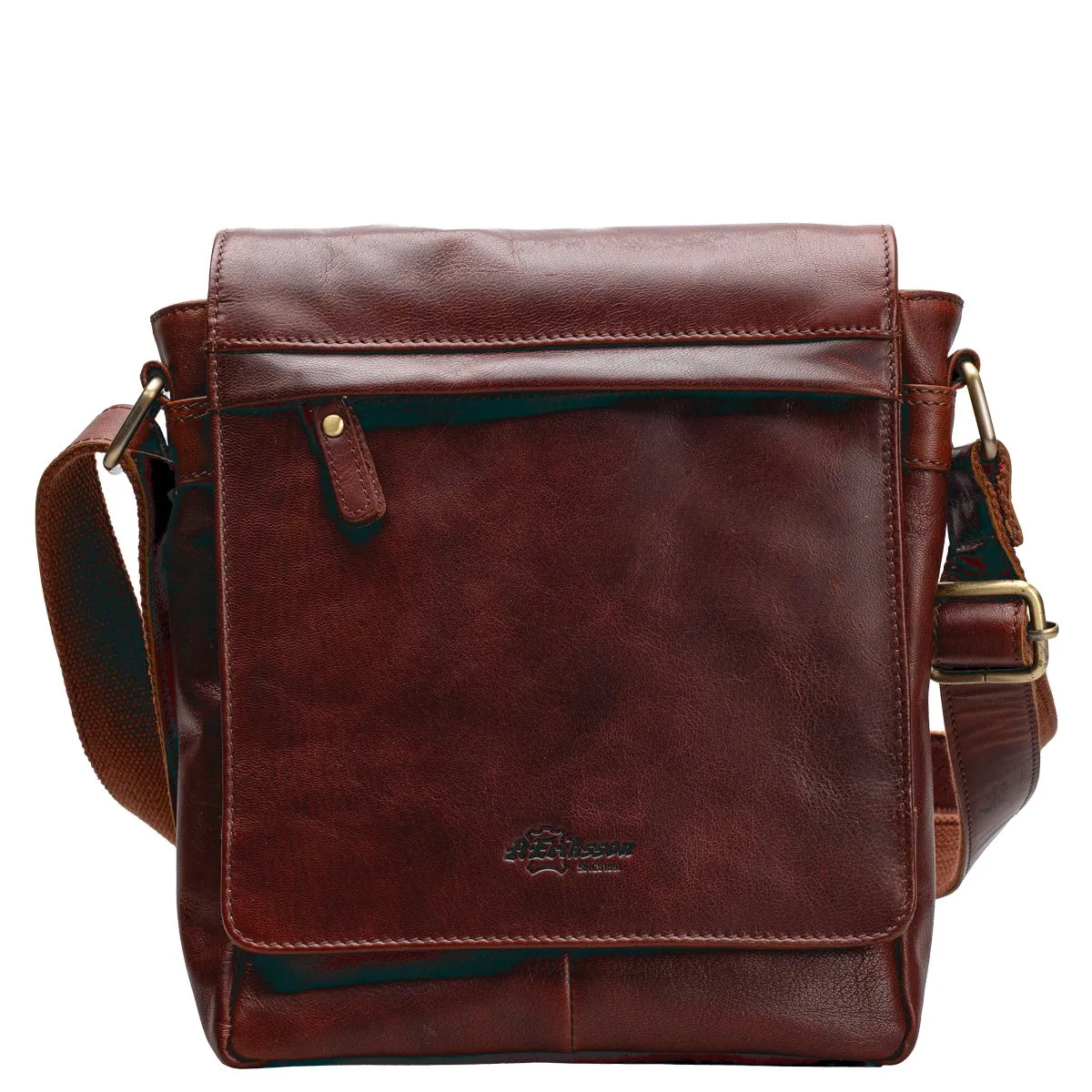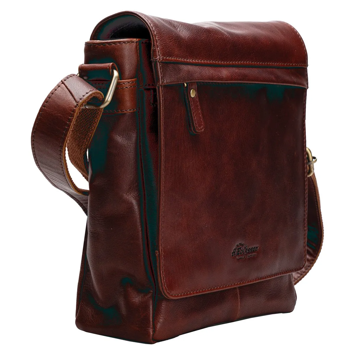 A. Erikssonin Poikko-malliston tyylikäs Pekka-messengerlaukku laadukasta nahkaa. Magneettikiinnitteinen läppä jossa päällä pieni vetoketjutasku ja alla toinen. Vetoketjulla suljettava päätasku jossa sisävetoketjutasku ja leveä avotasku. Laukun takana vielä vetoketjutasku. Tukeva, säädettävä, pitkä olkahihna. Mitat 22 x 25 x 9 cm.