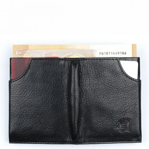 Kätevä pieni nahkainen RFID-suojattu korttilompakko. Neljä korttipaikkaa sekä pari lisäväliä korteille tai taitetuille seteleille. Mitat 8 x 10 cm.