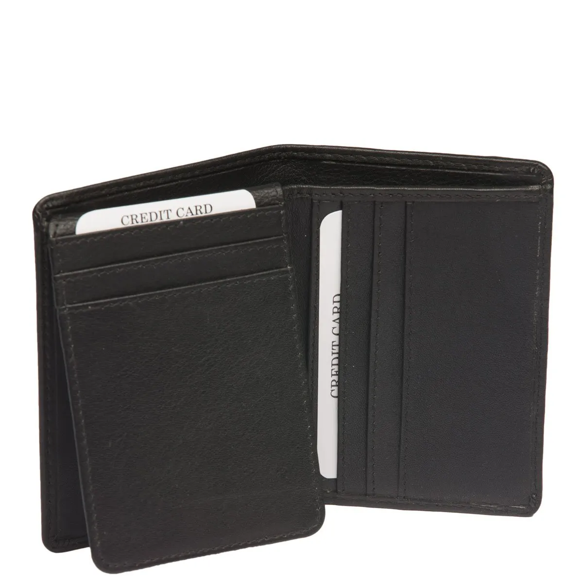 RFID-suojattu pieni korttilompakko pehmeää nappanahkaa. Ylöspäin aukeavassa läpässä ikkunallinen korttipaikka ja toisella puolella kolme tavallista korttipaikkaa. Lisäksi kuusi keskellepäin aukeavaa korttipaikkaa, pari muuta väliä sekä seteleille oma tasku taustalla. Lisäksi lompakon takana on pieni vetoketjullinen tasku muutamalle kolikolle. Mitat 7,5 x 10,5 cm.