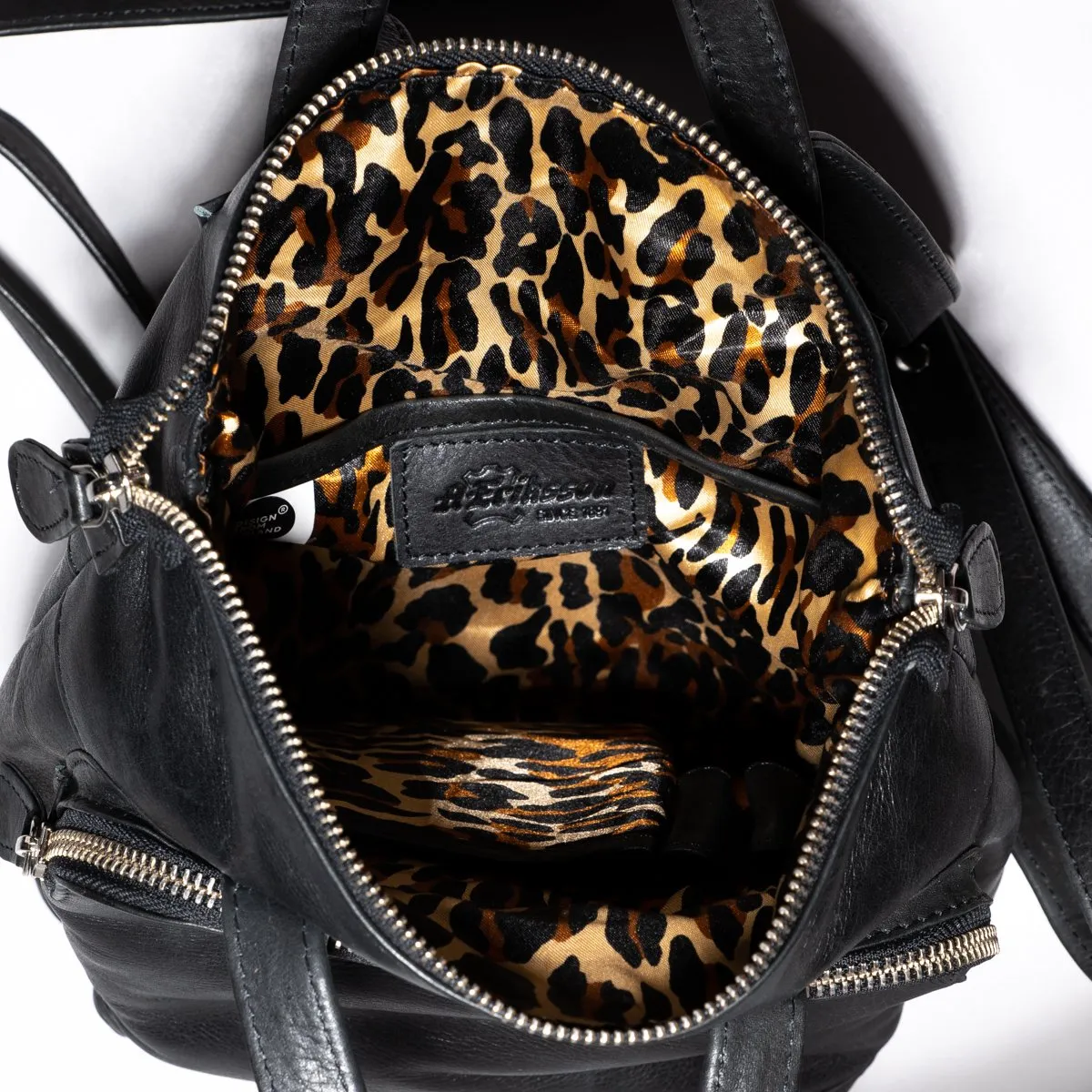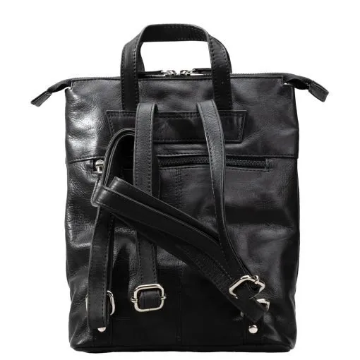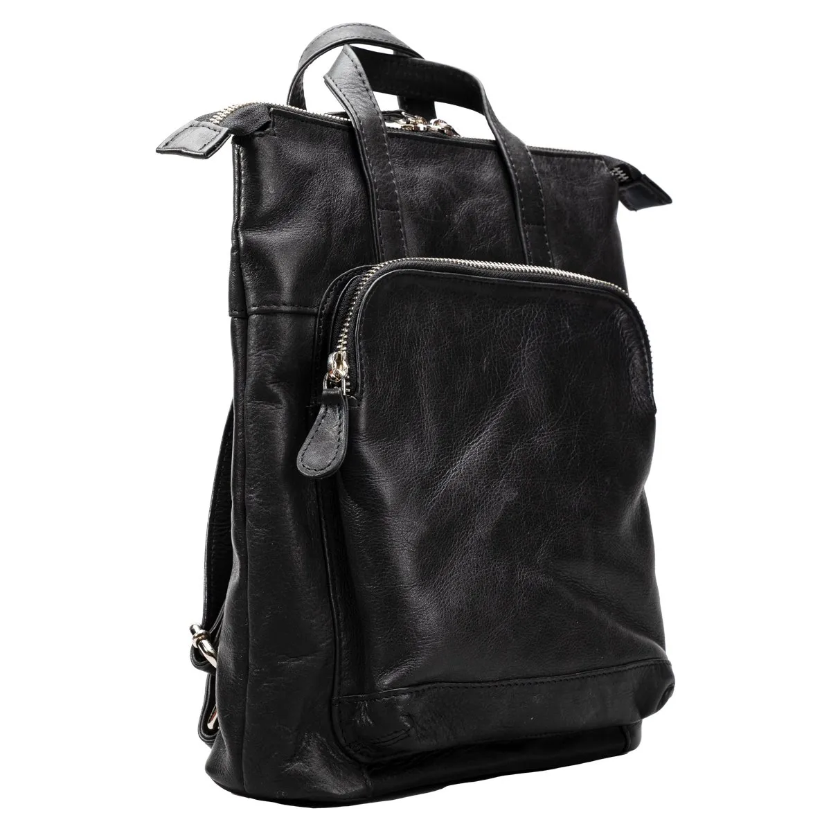 Kiva pienehkö nahkareppu kahteen suuntaan aukeavalla vetoketjulla. Päätaskussa sisällä avo- ja vetoketjullinen tasku, puhelintasku ja kaksi kynäpaikkaa. Lisäksi takana selkää vasten vielä vetoketjullinen tasku varkailta turvassa. Sisällä olevaan avotaskuun mahtuu juuri täpärästi 10,5″ tabletti. Olkainten pituus on säädettävissä. Mitat noin 23 x 28 x 10 cm. Paino 520 g.