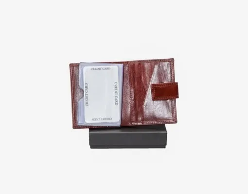 A. Eriksson Vårdö-malliston tuplaneppariläpällä suljettava nahkainen korttikotelo. Sisäkansissa kuusi korttipaikkaa ja lisäksi 12 korttipaikkaa helposti ja nopeasti selattavissa muovitaskuissa.