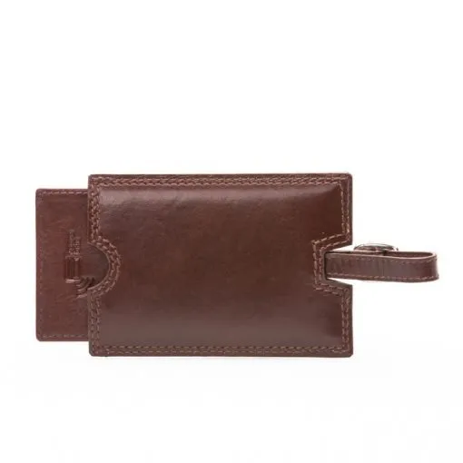 Vårdö-malliston tyylikäs osoitelappu solkikiinnityksellä. Nahkainen kotelo, jossa ulosvedettävä ikkunallinen korttitasku.