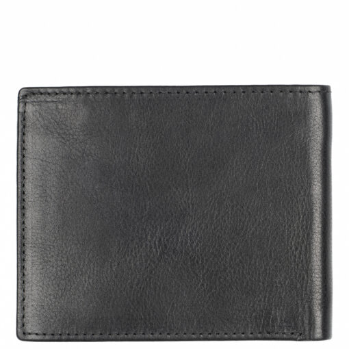 Klassinen nahkalompakko maksukorttien luvattoman etäluvun estävällä RFID-suojauksella. Kahdeksan korttipaikkaa, kaksi muuta taskua ja taustalla leveä kaksiosainen seteliväli.