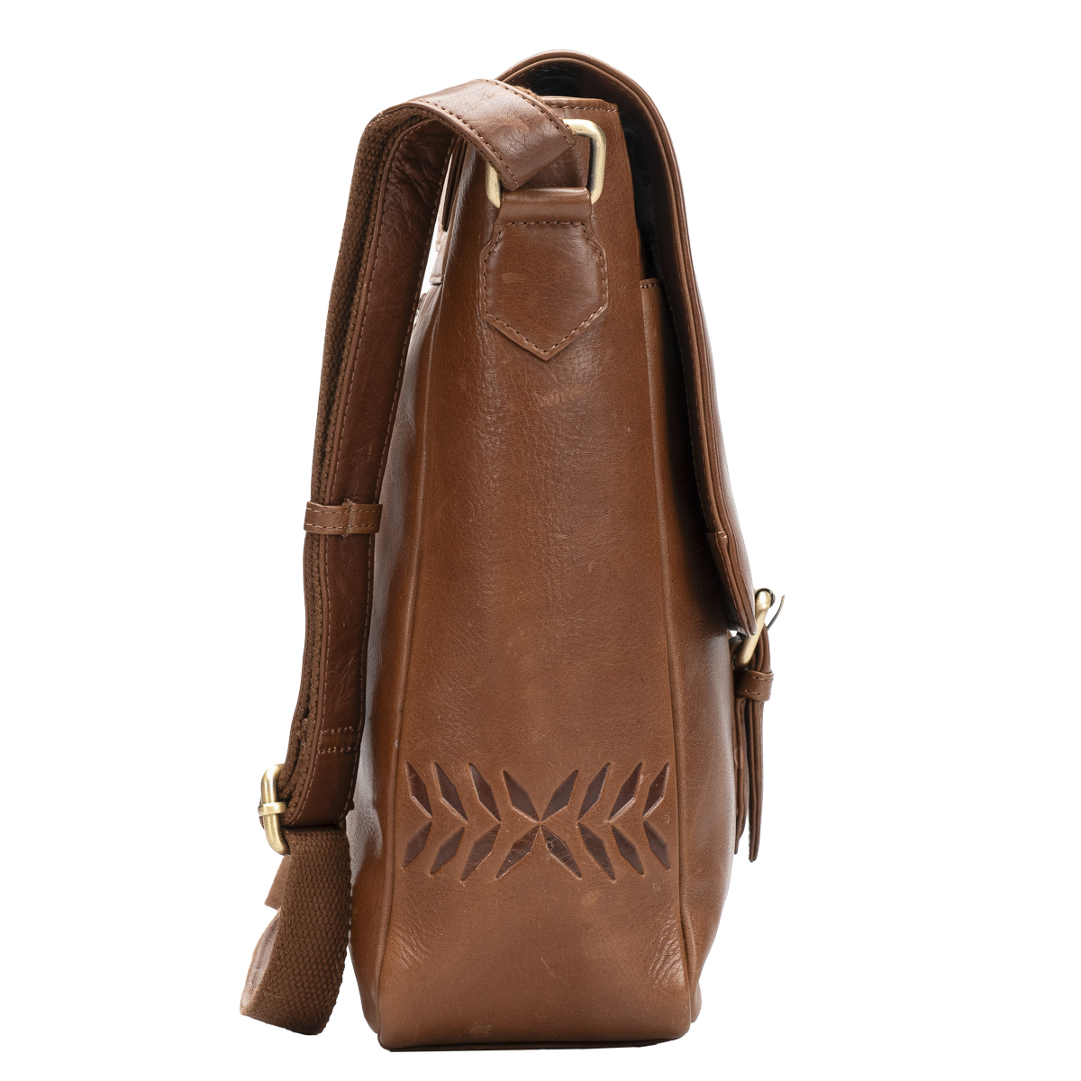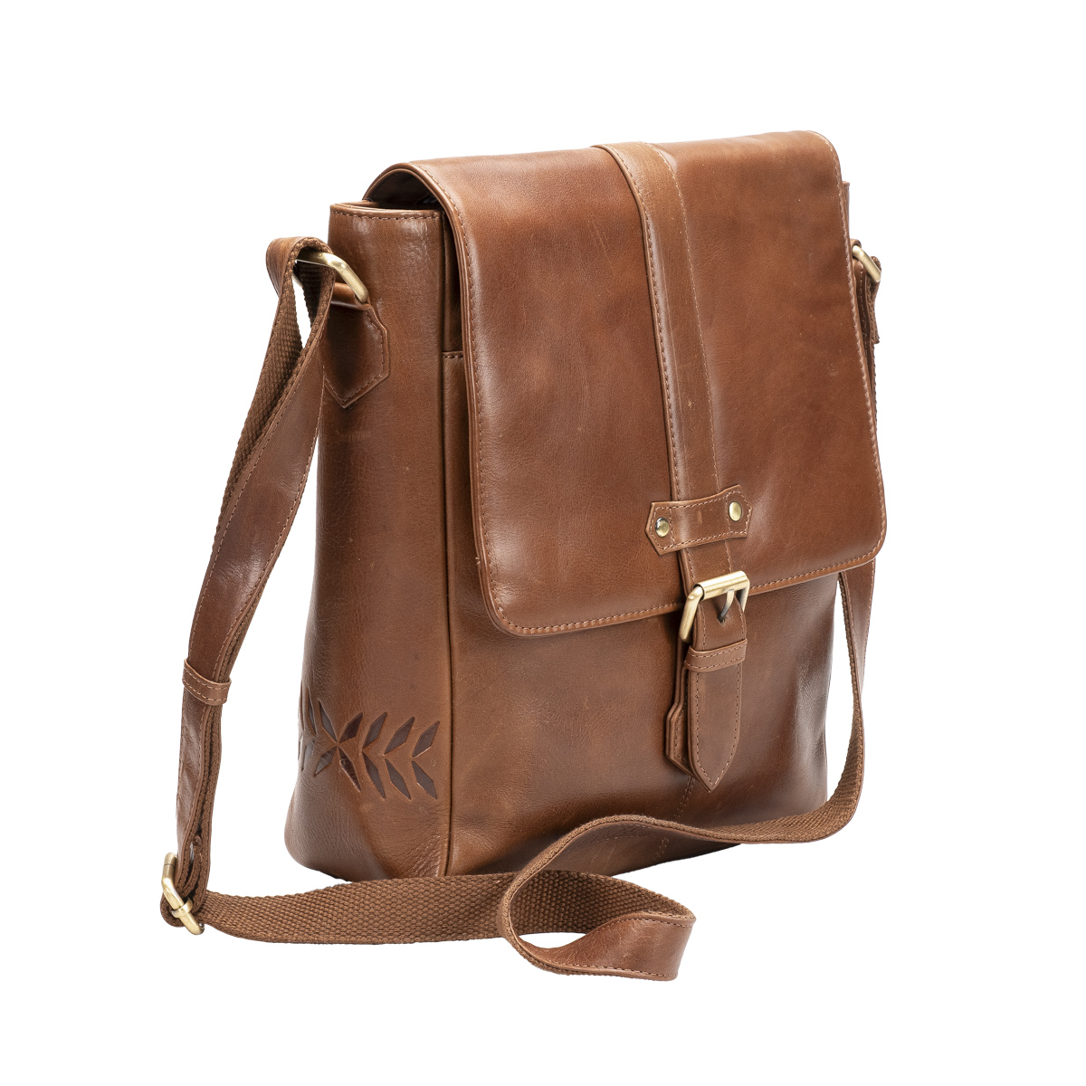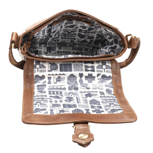 Kalevalan tyylejä mukaileva nahkainen olkalaukku useilla taskuilla. Magneettisoljella suljettava läppä, jonka alla avoin etutasku ja vetoketjullinen päätasku. Päätaskussa sisävetoketjutasku, kynäpaikat, puhelintasku sekä leveä tasku esimerkiksi tabletille. Laukun takapuolella vielä vetoketjullinen tasku. Portaattomasti säädettävä pitkä olkahihna.