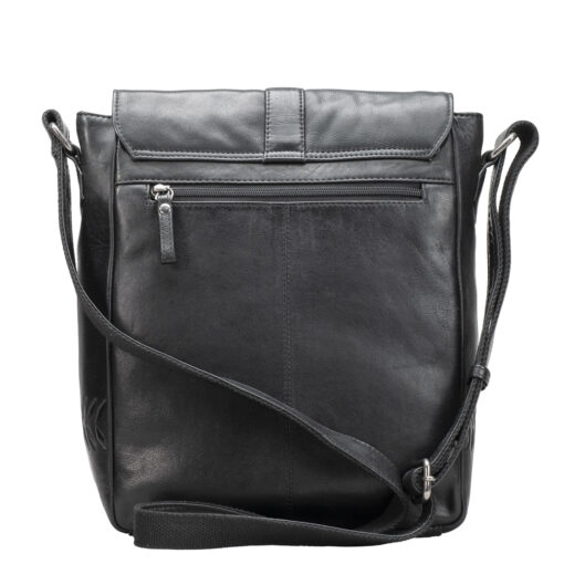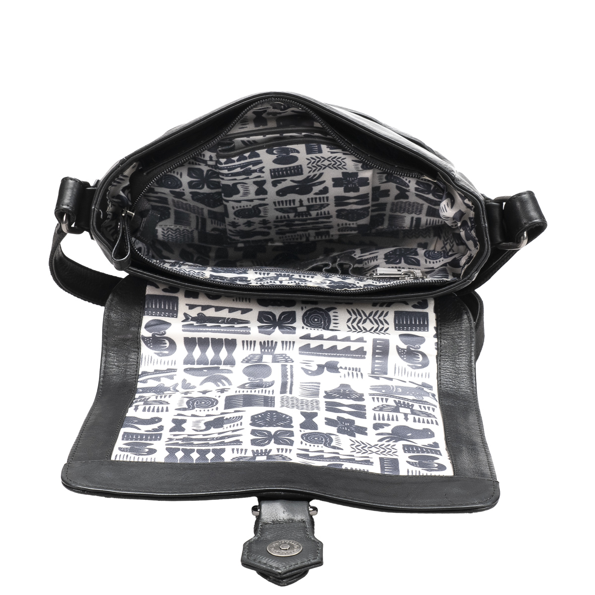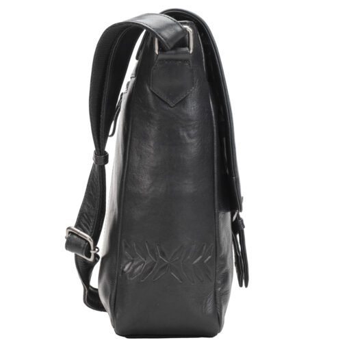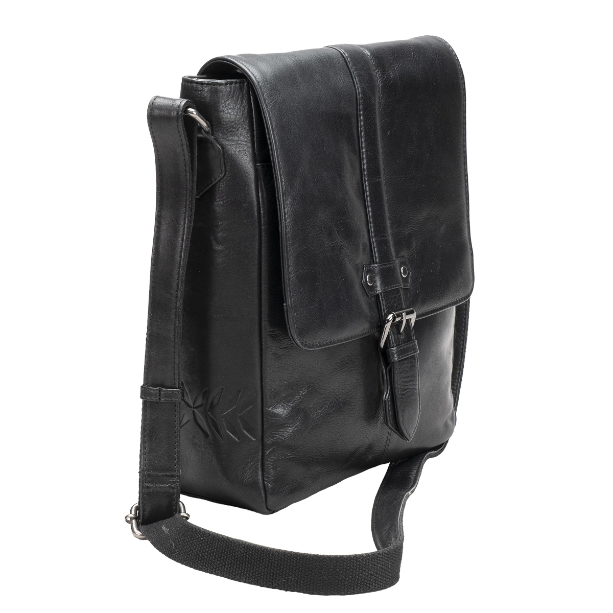 Kalevalan tyylejä mukaileva nahkainen olkalaukku useilla taskuilla. Magneettisoljella suljettava läppä, jonka alla avoin etutasku ja vetoketjullinen päätasku. Päätaskussa sisävetoketjutasku, kynäpaikat, puhelintasku sekä leveä tasku esimerkiksi tabletille. Laukun takapuolella vielä vetoketjullinen tasku. Portaattomasti säädettävä pitkä olkahihna.